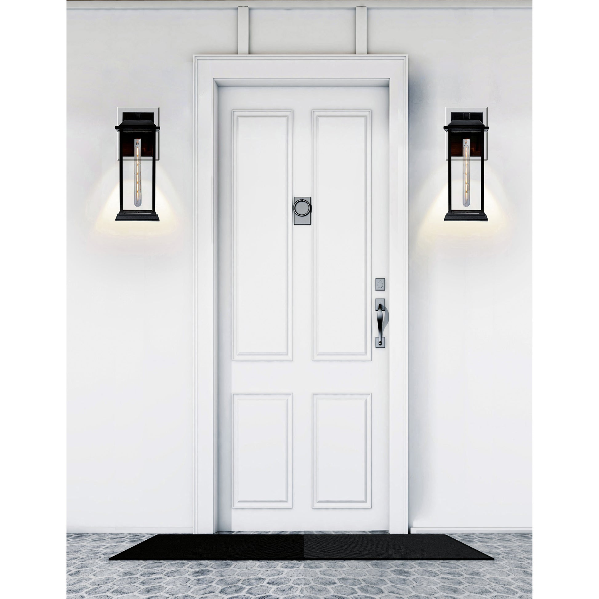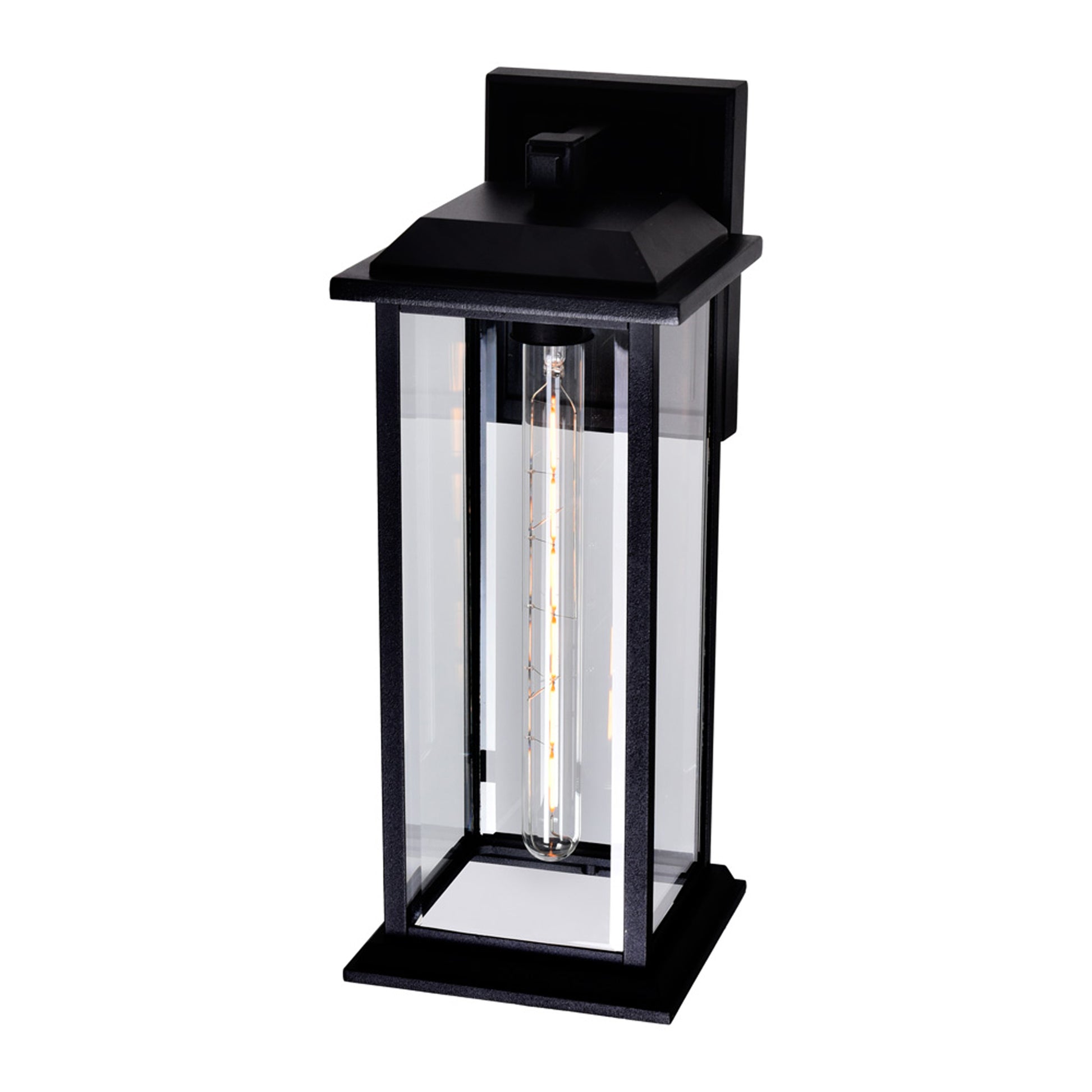 Illuminate your outdoor spaces with the Blackbridge 1-Light Black Outdoor Wall Lantern. Featuring a traditional square design with clear glass panes and a durable black metal frame, this fixture delivers bright, inviting light while withstanding outdoor conditions. Perfect for porches, patios, and gardens, it enhances your homes exterior with classic style and functional illumination.