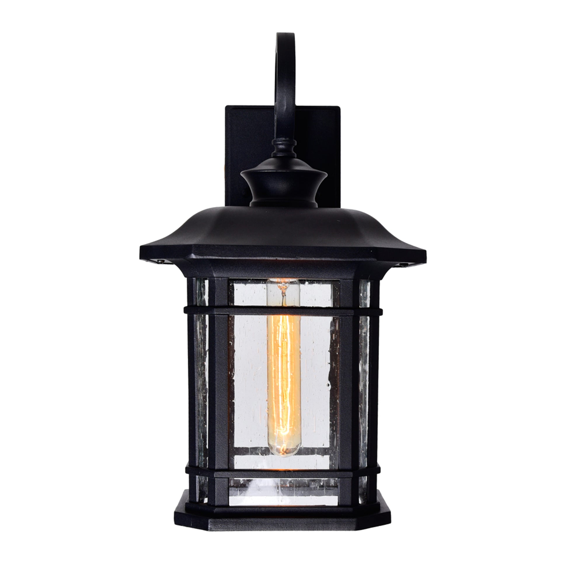 Enhance your outdoor spaces with the Blackburn 1-Light Outdoor Wall Lantern. Featuring a charming octagonal prairie-style design with a black metal frame and clear glass panes, this 17-inch lantern delivers bright illumination to make walkways, patios, and lawns safer and more inviting. Built to withstand outdoor conditions, it combines classic style with functional lighting for your homes exterior.