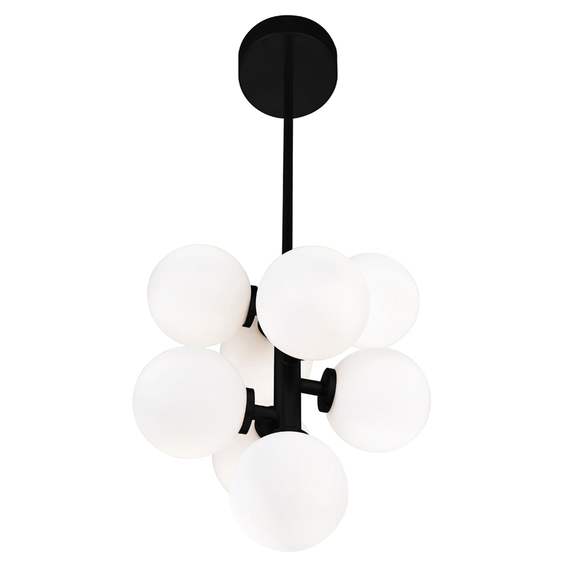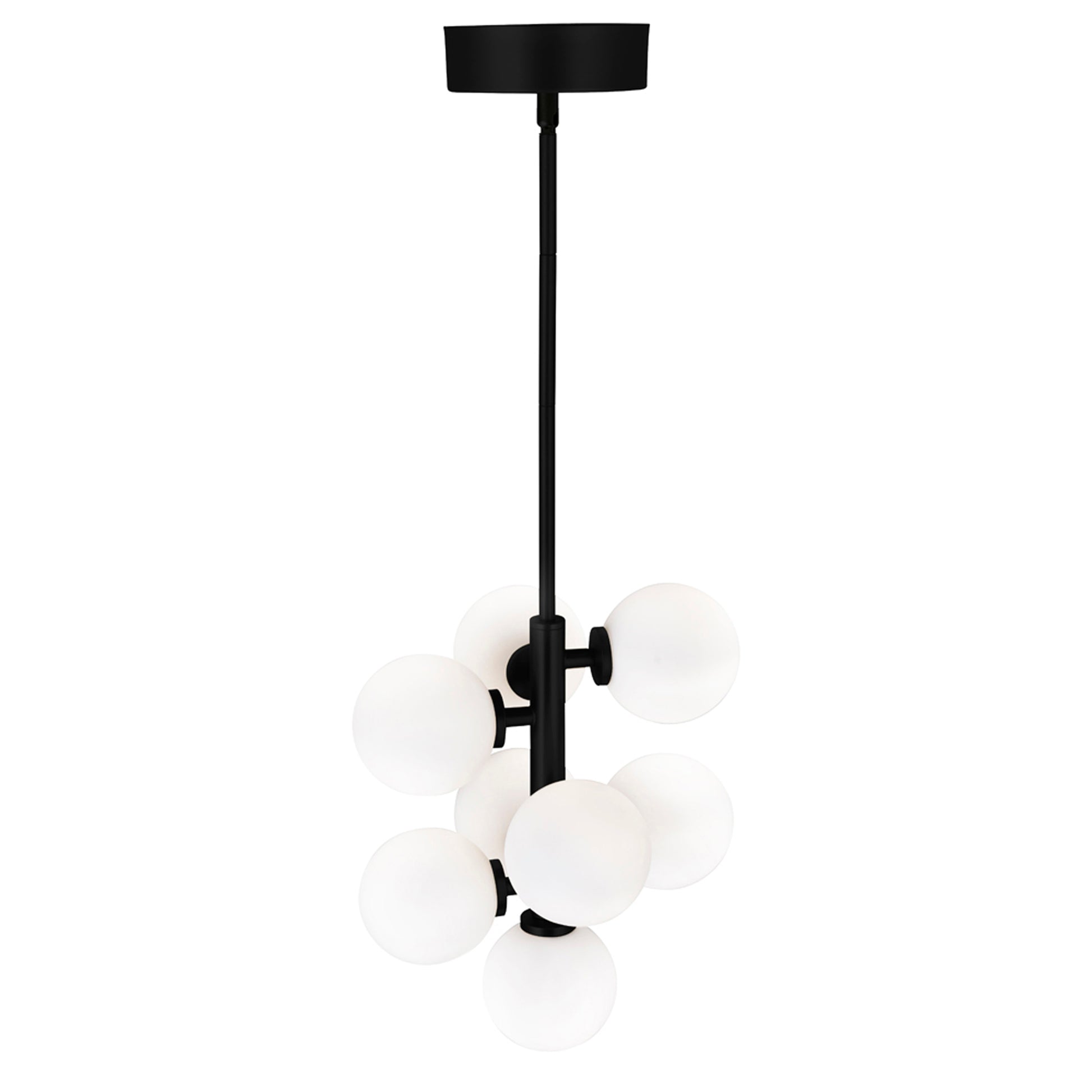 Sure to be a stand-out feature in your modern dining room or kitchen, the Arya 8 Light Pendant in Black finish will radiate a chic style to your space. This beautiful pendant light measures 12 inches in diameter and features eight frosted glass globes affixed to a luxe metal frame. Dimmable and for use with LED bulbs, this lighting option will prettify and illuminate your space for years.