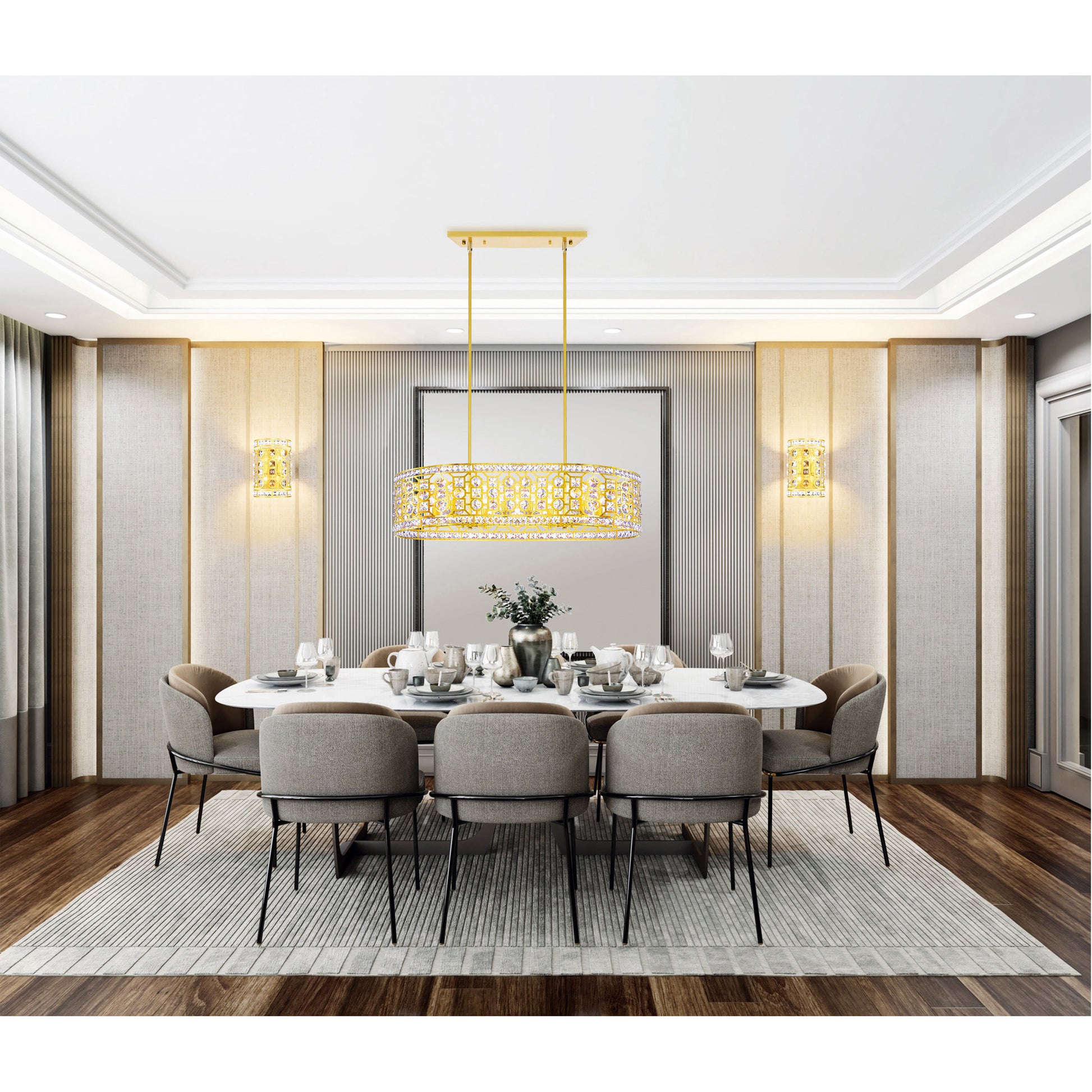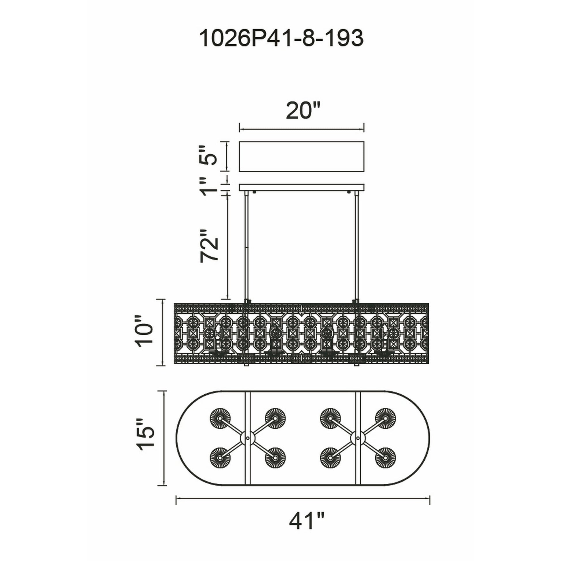 No doubt, this light source looks gorgeous when the light is on and even when it's off. The Belinda 8 Light Chandelier will mesmerize you with its playful geometric pattern made to look elegant by the glittering crystal prisms and the metal frame's champagne finish. This 41 inch long chandelier makes a luxurious light source for the pool table, the dining room, or the kitchen island.