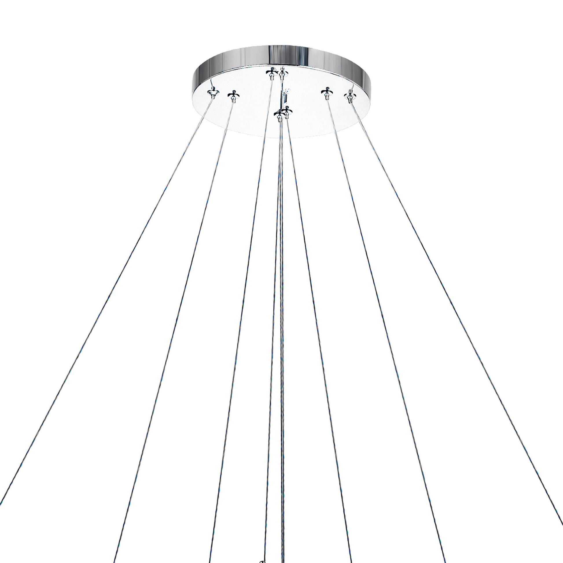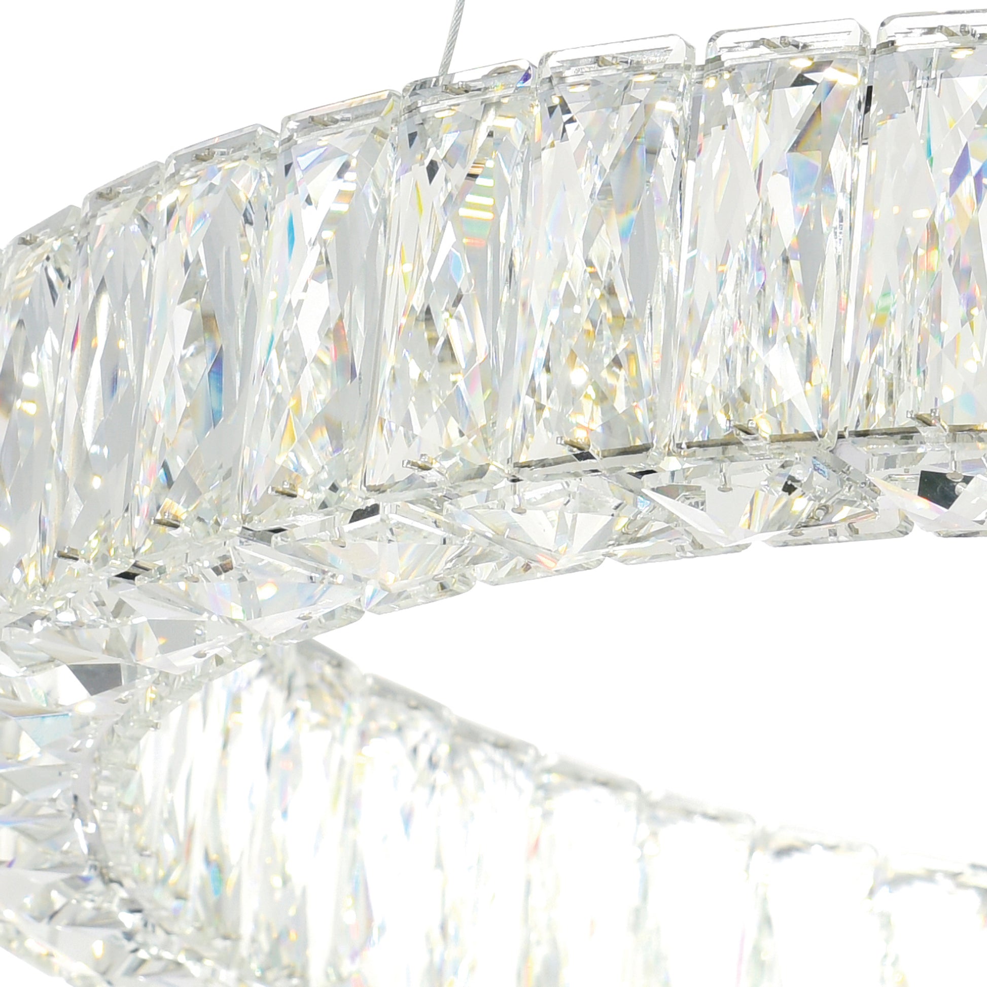 Elevate the luxury vibe in your living space by adding this Madeline 3 Ring LED Chandelier in chrome finish. This light fixture has concentric rings embellished with clear crystals. An energy-efficient and an ultra-glamorous source of light, this oversized down chandelier will make a stronger impact when hung on a high-ceiling stairwell or foyer.