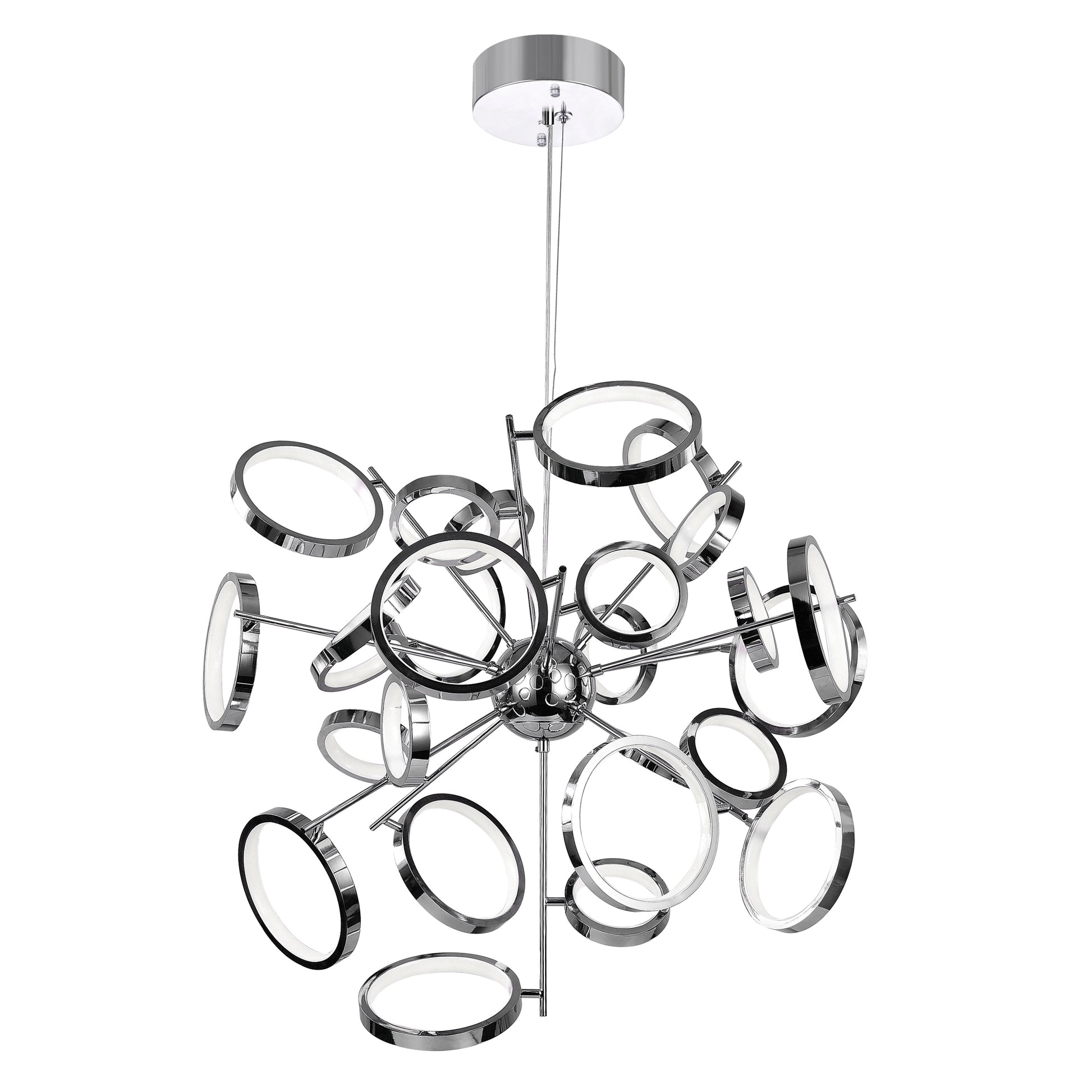 Measuring 31 inches in diameter, this striking light fixture will make your interior's style shine a bit brighter. The Oversized Colette LED Chandelier in Chrome features a round cluster of rings with integrated LEDs. This modern luminaire with a geometric profile is a great option when you want a light fixture that will make a statement and catch the eye.