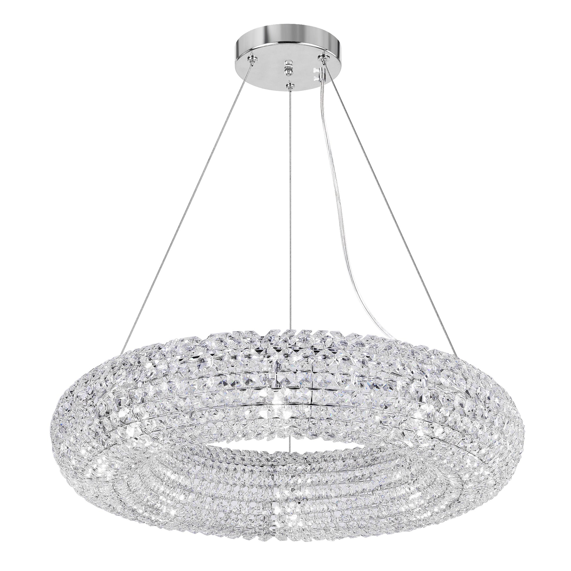 Let the Veronique 8 Light Chandelier be the crown jewel in your dining room. This twinkling down chandelier makes hearts sing with its refined grace. The disc-shaped frame enveloped in glittering crystals measures 24 inches in diameter. The suspension height can be adjusted to fit your low or high ceiling. Add a dimmer switch and be able to adjust the luminous flux to create your preferred atmosphere.