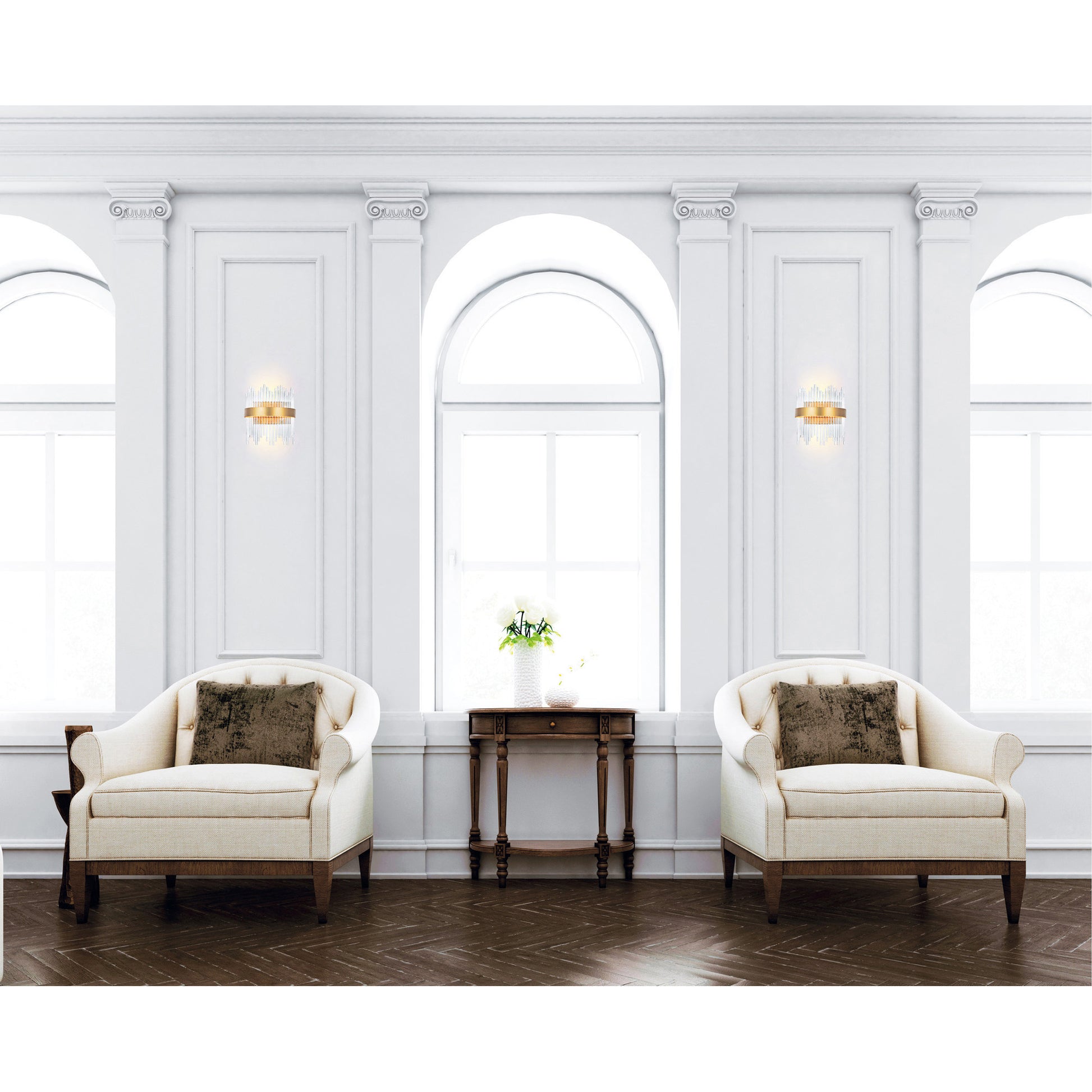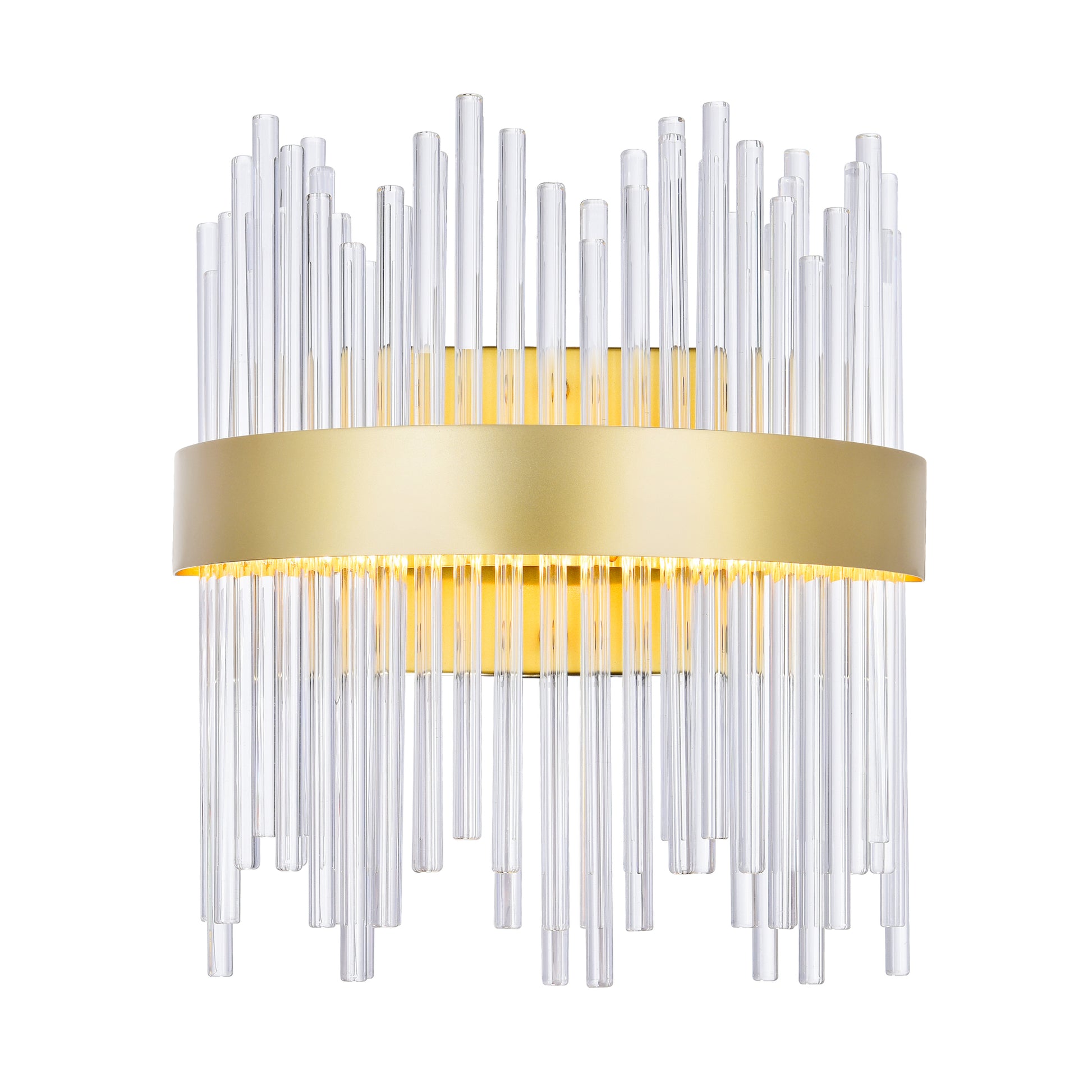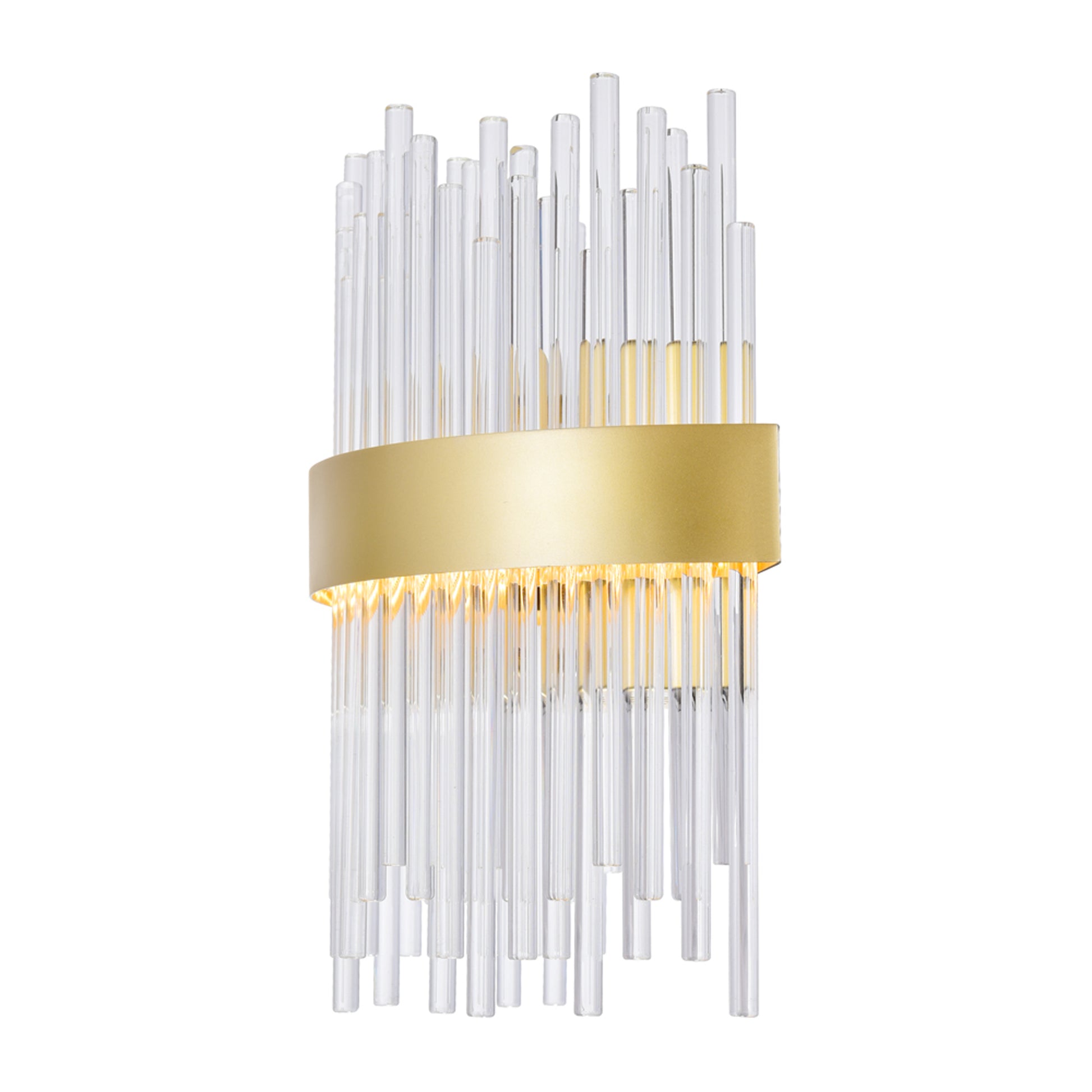 Not only will your space be illuminated, your home's appeal will also be elevated by this Genevieve 12 inch LED Wall Sconce. This light fixture is designed with several clear crystal tubes in different heights held by a half-circle metal frame in medallion gold finish. Install a pair of this lighting option in the bedroom for a romantic ambiance or in your gallery wall in the hallway to draw eyes directly to your favorite art piece.