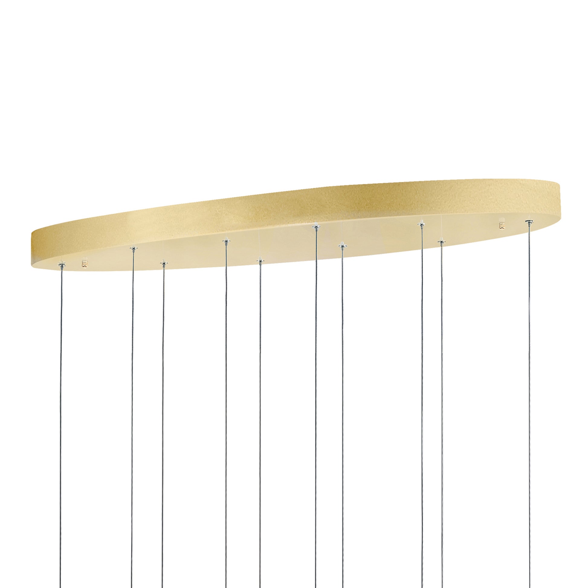 Add scale and a sense of grandeur to your space with the Carolina Gold Leaf 40 inch LED Chandelier. This show-stopping down chandelier features an oval canopy in gold leaf finish holding ten clear glass panels with integrated LED. The floating quadrilateral panels of light diffuse a glow of luxurious beauty into the room. This is the perfect light source when you want to add a touch of opulence to your space while maintaining its airy and inviting vibe.