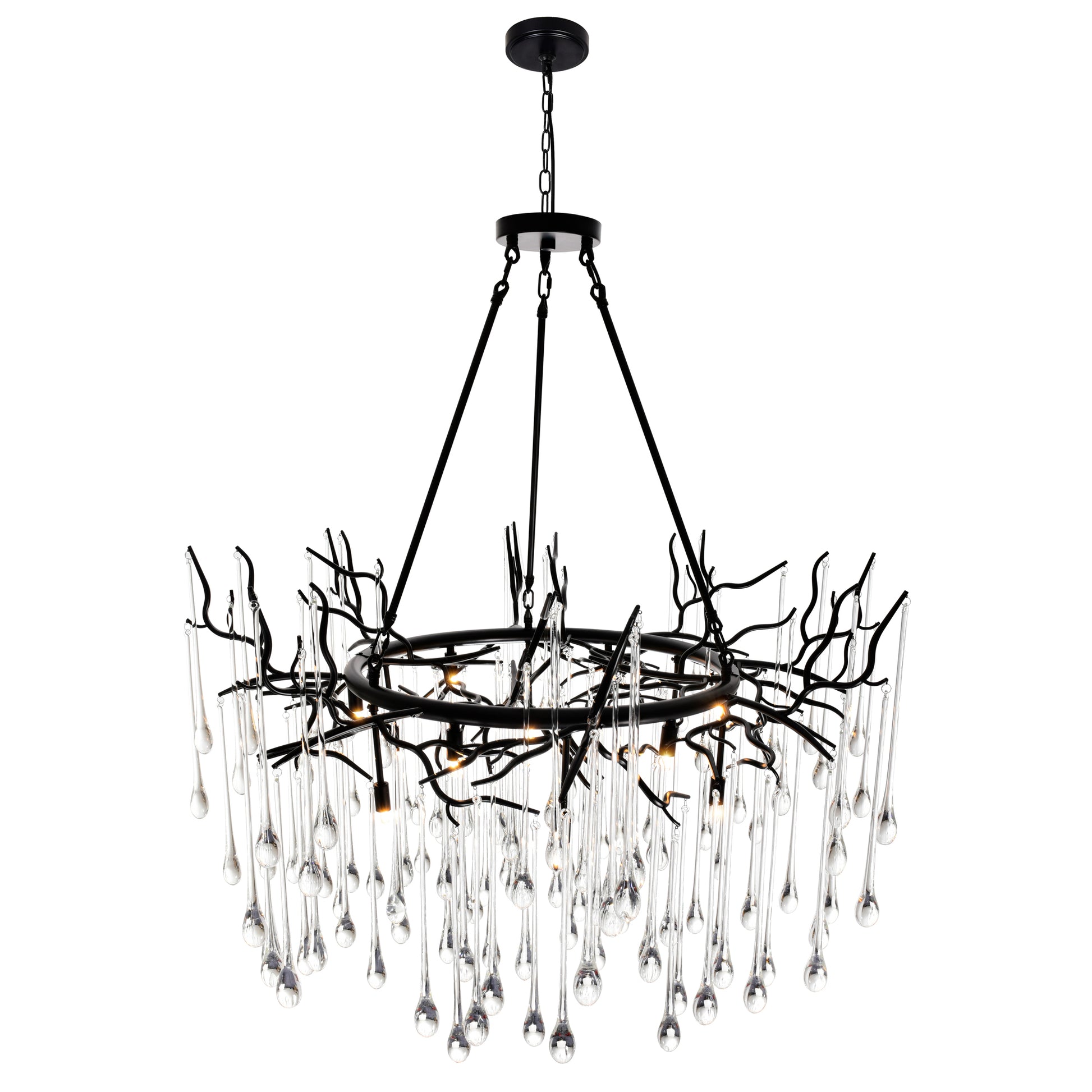 Your velvet modern chairs and this oversized Anita 12 Light Chandelier will create an ambiance that's indulgent and beautiful. This breathtaking down chandelier features clear teardrop crystals dramatically dripping from a black tree branch sculpture. Add this transitional down chandelier to your dining room or living room for a luxurious look.