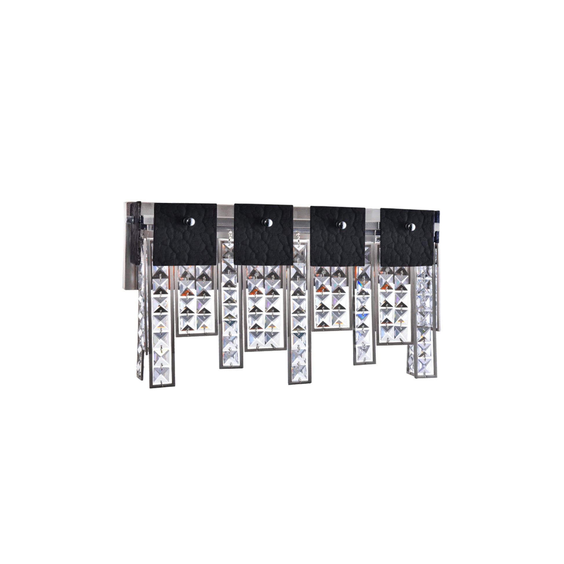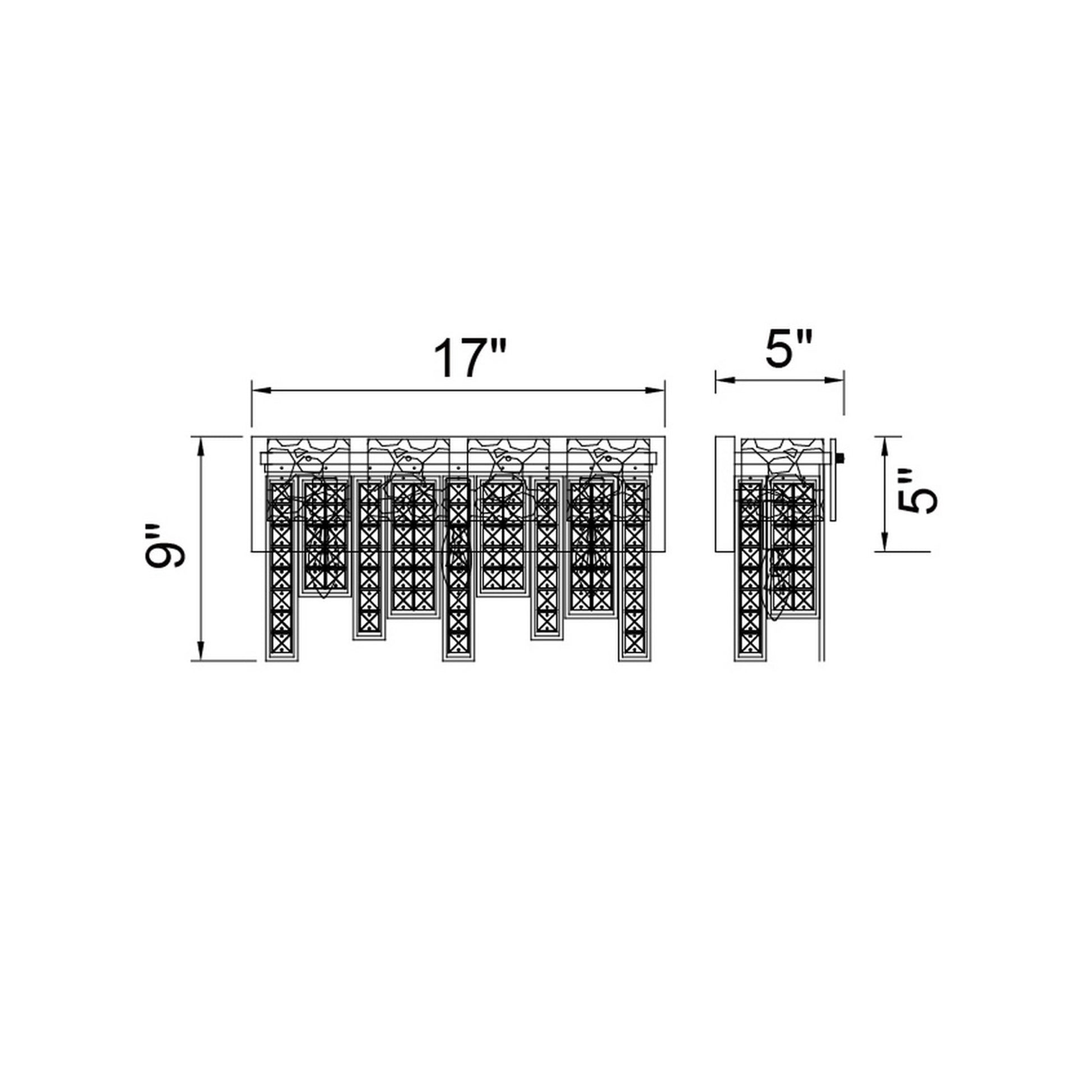 The Glacier 3 Light Wall Sconce has an intriguing visual appeal and a special shine. It features a 17 inch rectangular frame adorned with textured square metal panels. Suspending from the base frame are glittering glass panels with polished nickel metal frame. These glass panels beautifully reflect the light emitted by three candelabra bulbs.