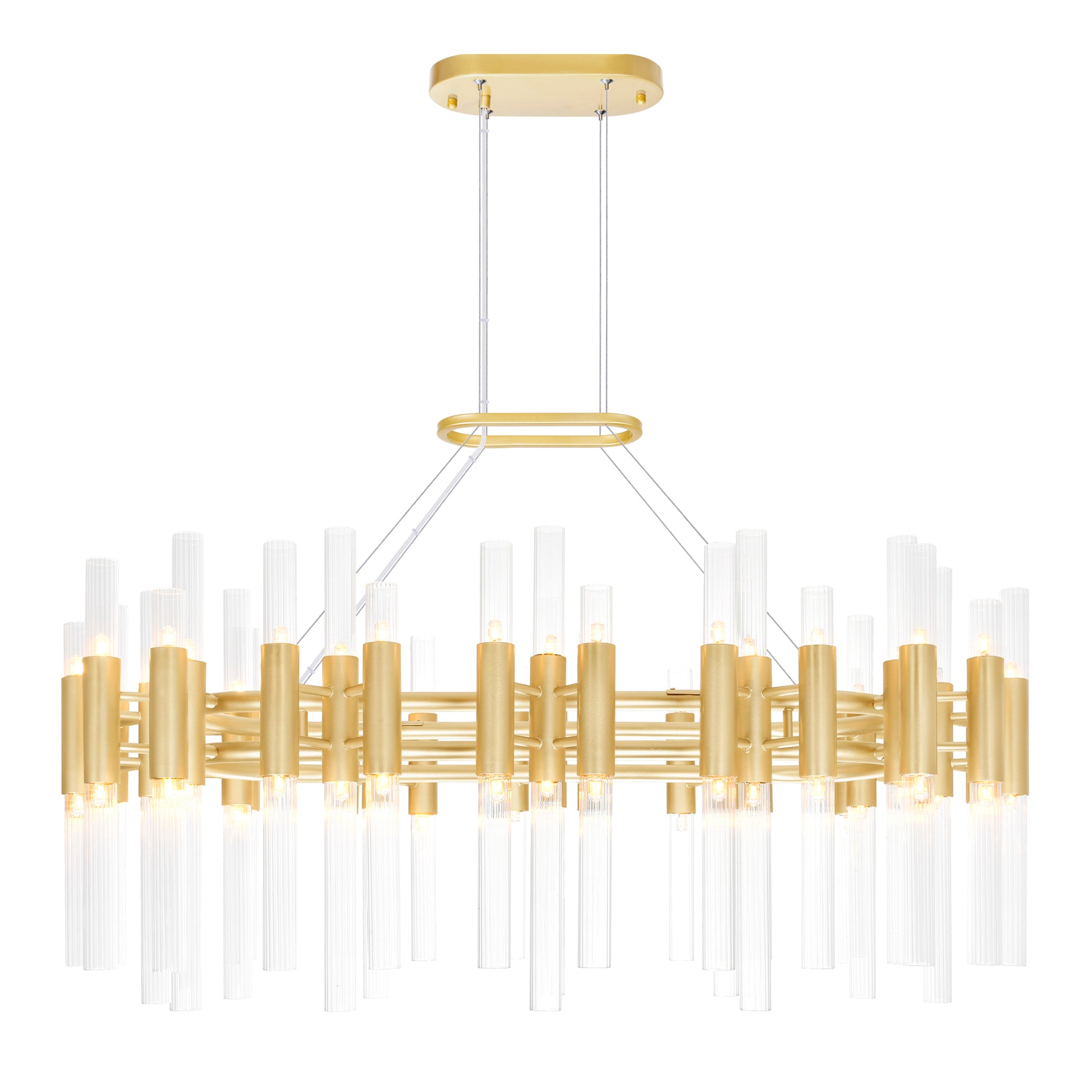 Make a bold statement with the Orgue 72-Light Chandeliera stunning blend of contemporary design and luxurious elegance. Its impressive 39-inch size and vibrant, cascading lights create a captivating focal point in any room. The satin gold finish adds a touch of sophistication, while its weightless, floating design brings modern charm to your decor. Perfect for illuminating a dining room, kitchen island, or grand entryway, this chandelier casts a warm, inviting glow that enhances your space.