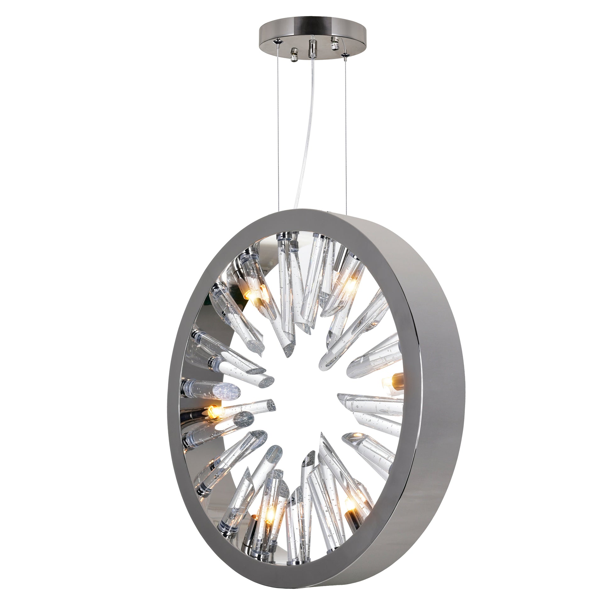 Showcasing a careful blend of form and function, the Spiked 6 Light Chandelier in Polished Nickel finish will give your home an extra dose of style. This statement chandelier with a round metal frame and crystal spikes will add interest and personality to your dining room or kitchen without overwhelming your guests.