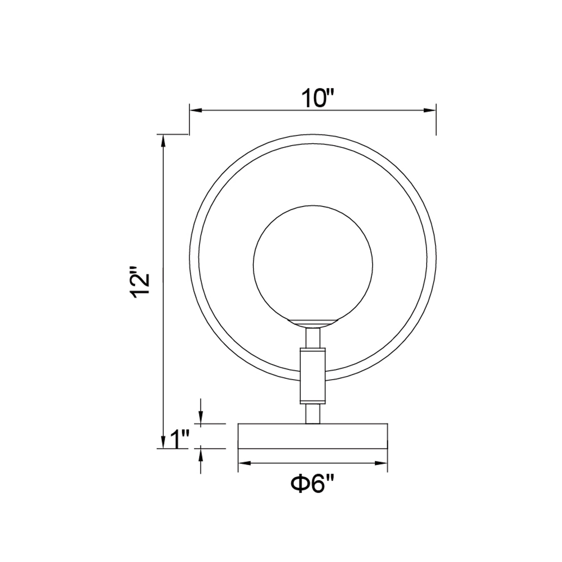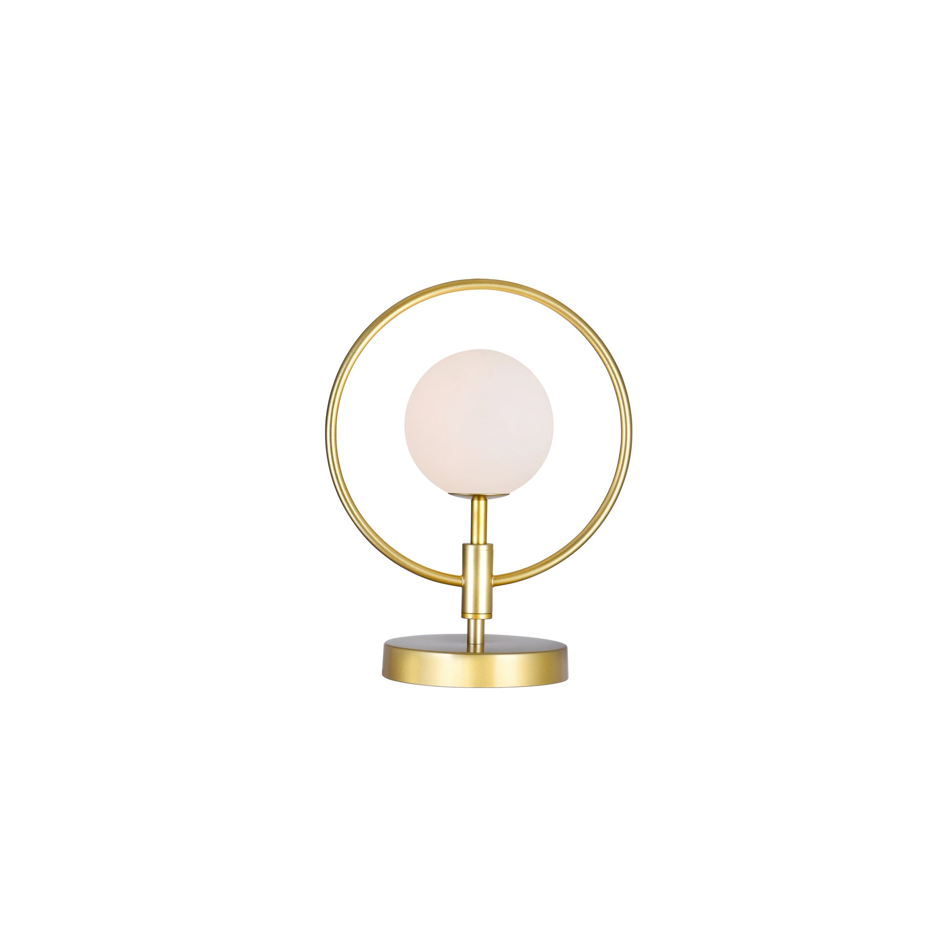 The Celeste 1 Light Table Lamp is a 10 inch medallion gold luminaire ready to round out your bedside table. This modern globe lamp will bring coziness to your space and will allow you to enjoy a soft, diffused light for reading or for creating a relaxing ambiance. Simple yet striking, this geometric table lamp with a delicate silhouette will also look perfect on a living room end table or a home office desk.