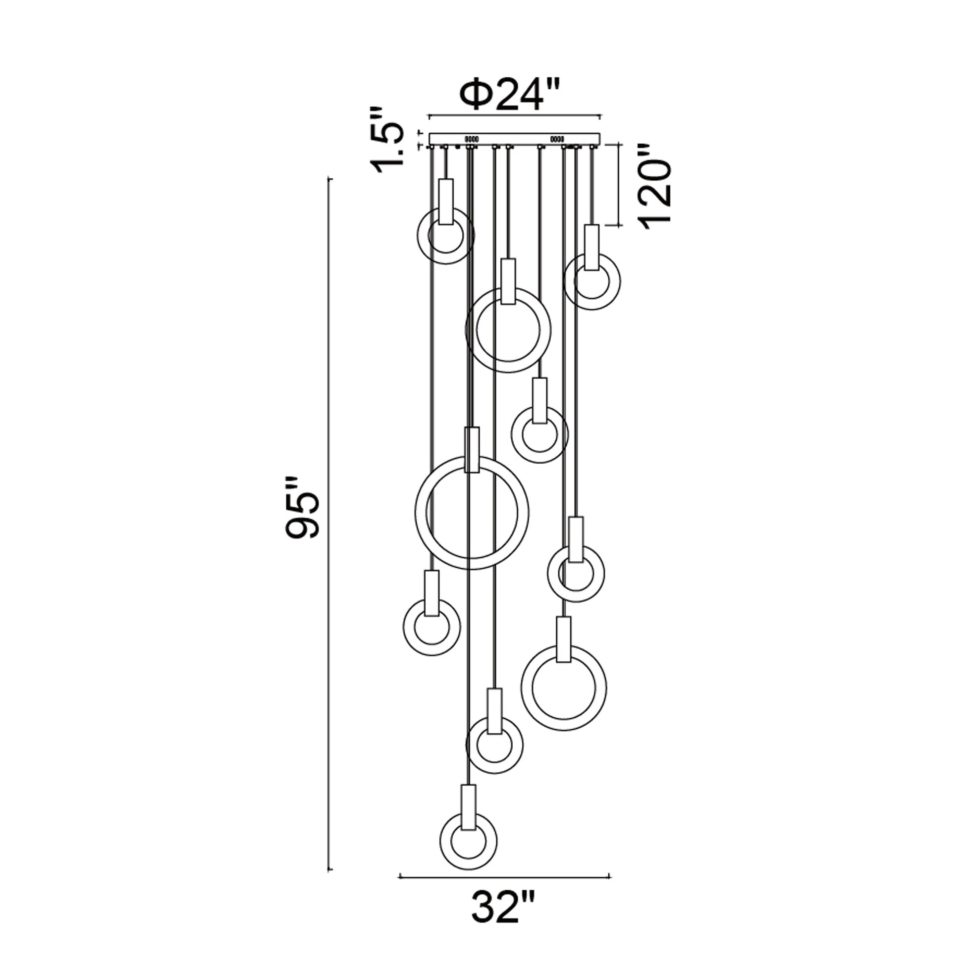 The Anello Oversized LED Chandelier in White Oak is designed to impress. On a round white oak canopy are multiple black cords descending to hold multiple LED rings. Measuring 95 inches tall, this extra-large pendant light offers a long and impressive suspension drop that's sure to wow your guests. This piece is perfect for rooms with an extra high ceiling or for stairwells that need not just light but also something big and interesting.