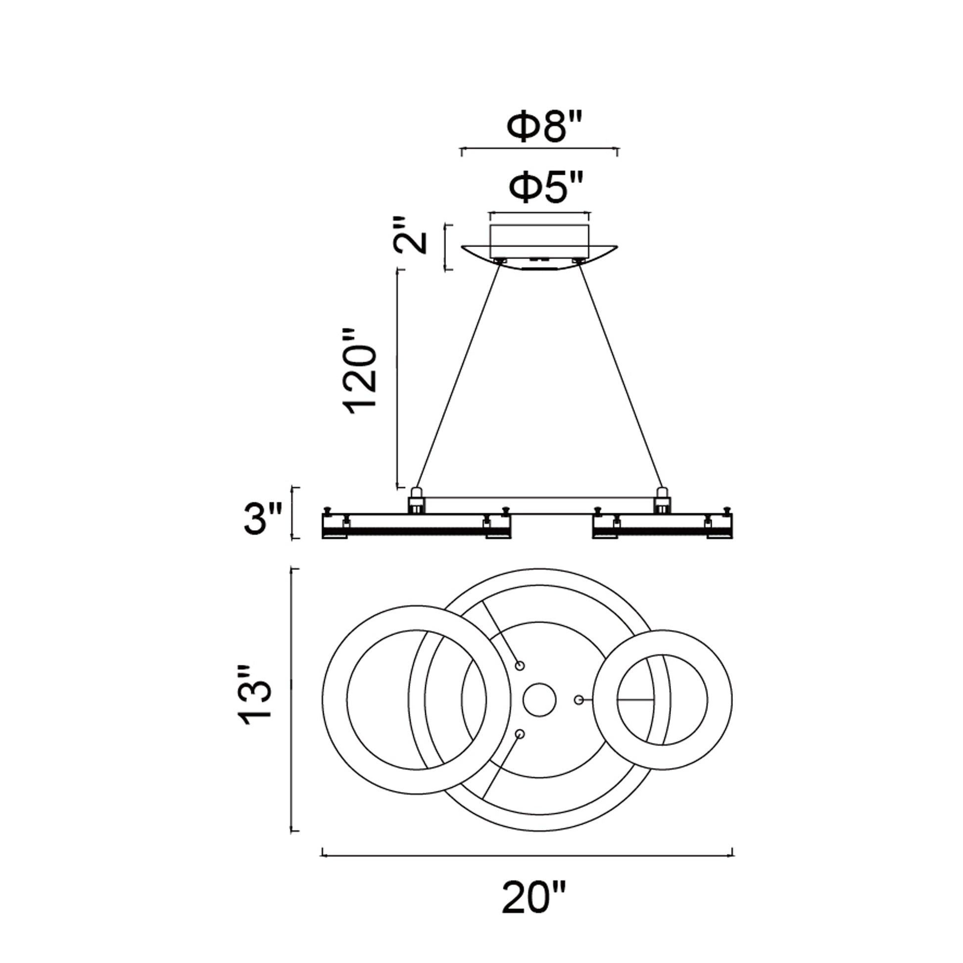 Complement your open floor plan and modern furniture with the subdued charm of this 20 inch Deux Lunes LED Chandelier. Featuring a trio of adjustable rings, two of which with integrated LEDs, this beautiful chandelier in sun gold and black finish will complete the stylish look of your industrial-chic dining area or modern-rustic living room interiors.