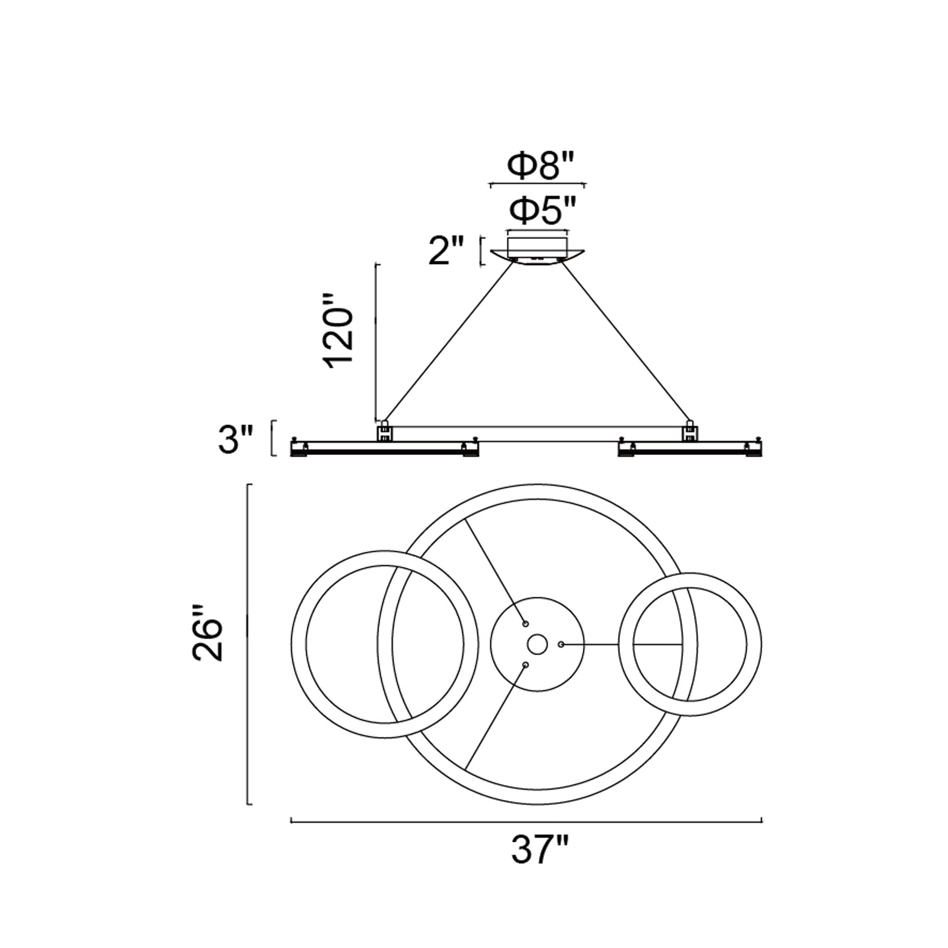 Transform your ceiling into a showpiece with the Deux Lunes 37-Inch LED Chandelier in Sun Gold and Black. Designed with three interlocking rings, this oversized fixture delivers bright, energy-efficient illumination while blending modern and rustic aesthetics. Perfect for living rooms, dining rooms, and foyers, it adds a dramatic and elegant touch to any space, becoming the crown jewel of your interior decor.