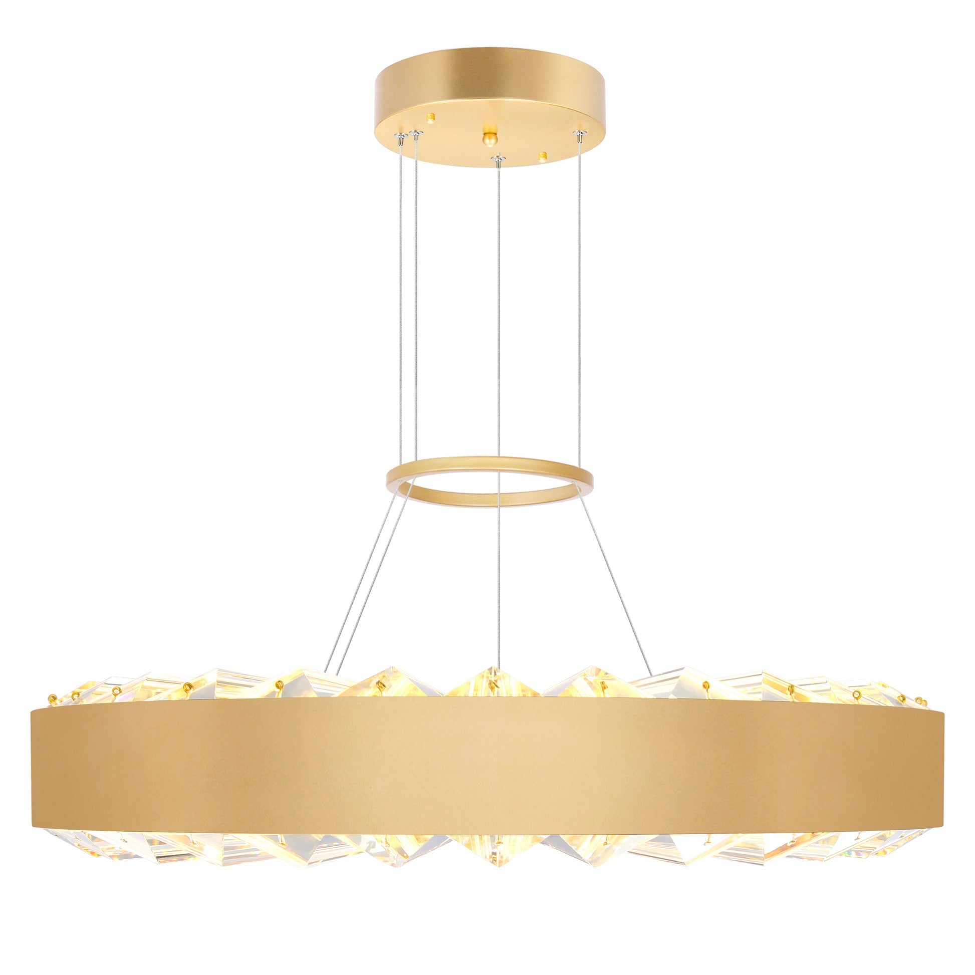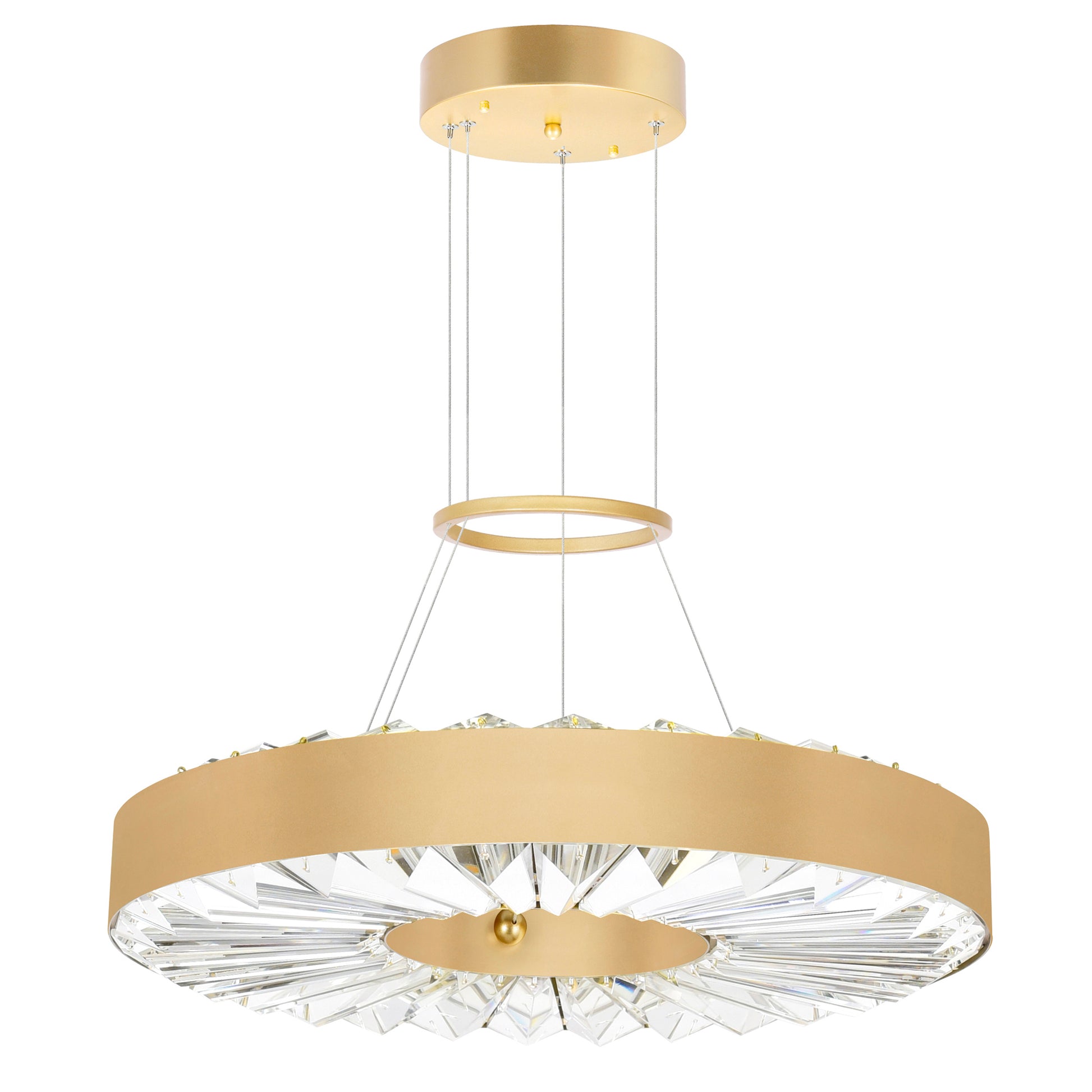 Beaming a warm and welcoming light is the Bijoux 16 inch LED Chandelier in sun gold. This light fixtures combines classic and modern design elements with its brass hardware, clear crystal shade, and integrated LED. Ideal for a variety of settings, this circular down chandelier will bring a contemporary flair to any space.