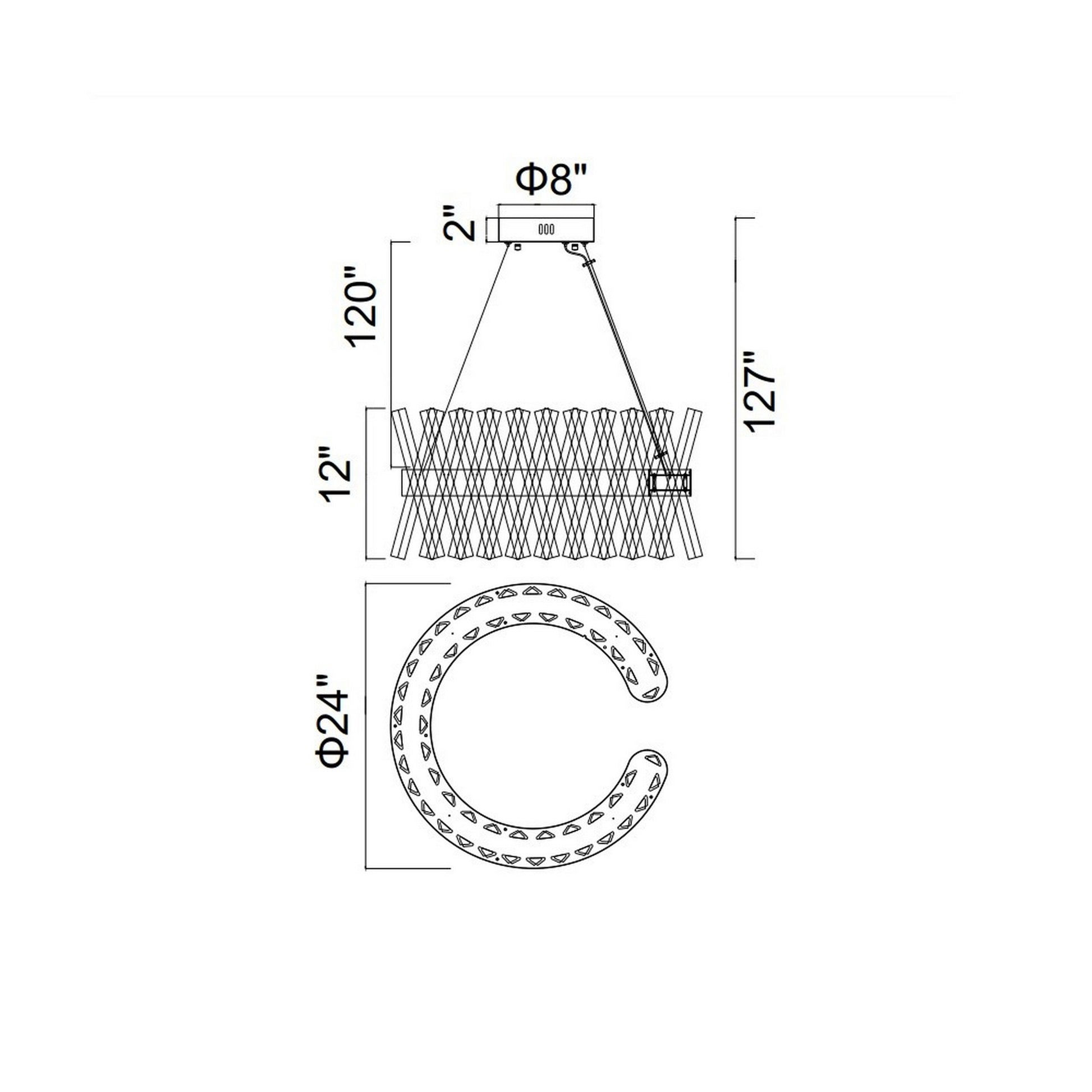 Bring a unique visual interest into your space through the modern sparkle of this Glace 24 inch LED Chandelier. A circular pendant measuring 24 inches in diameter displays a metal band circled by clear crystal prisms with integrated LED. With this light fixture's refreshing presence, expect your space to be illuminated by ample light and dynamic energy. This chandelier has a height that can be extended up to 127 inches.