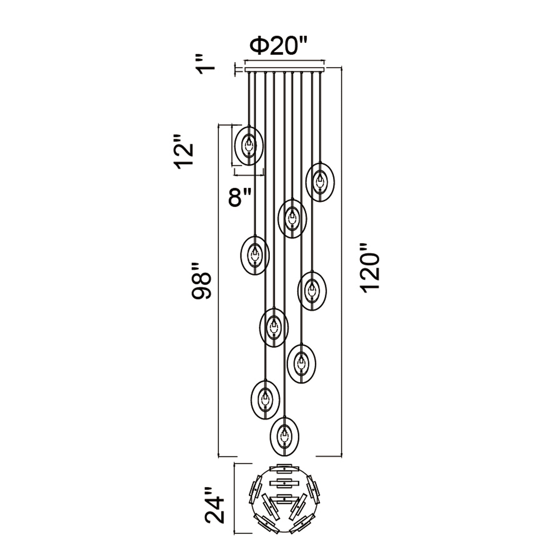 Install the Iris 9 Light Chandelier in your stairwell and watch it attract many eyes. Your modest stairway will gain an elegant makeover with this large, decorative multi-point pendant light. A total of nine bulbs held by round open frames will deliver ample illumination to your steps. Each round pendant has a sun gold finish that will add a dramatic flair to your interiors.