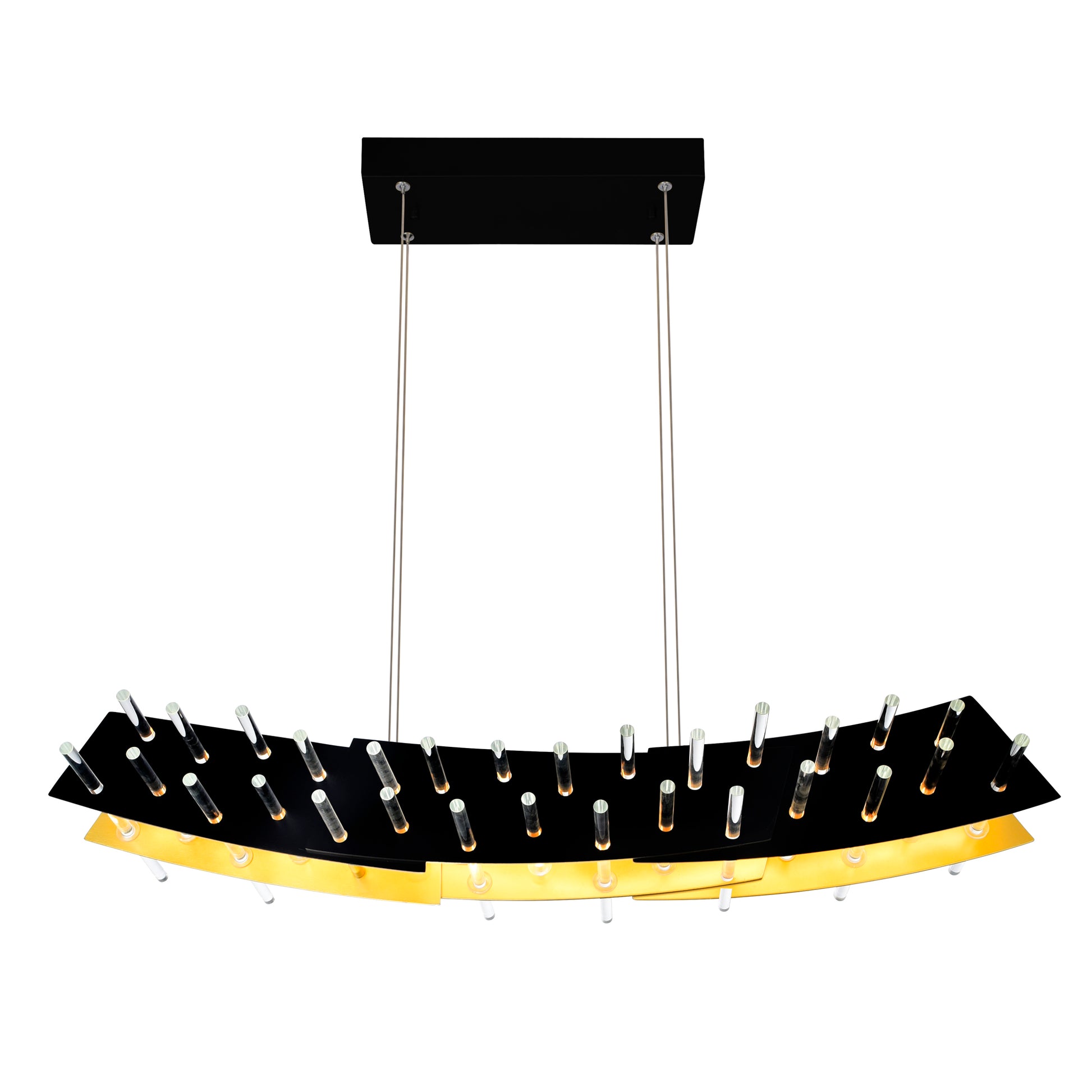Displaying the silhouette of a watercraft it was named after, the Gondola Black 2 Light Chandelier can make interior styling smooth sailing. This light fixture can do more than just illuminate. You can count on its modern, futuristic design to create an atmosphere and bring depth to your space. This one-of-a-kind light source will look perfect above the dining table, pool table, breakfast bar, or kitchen island.