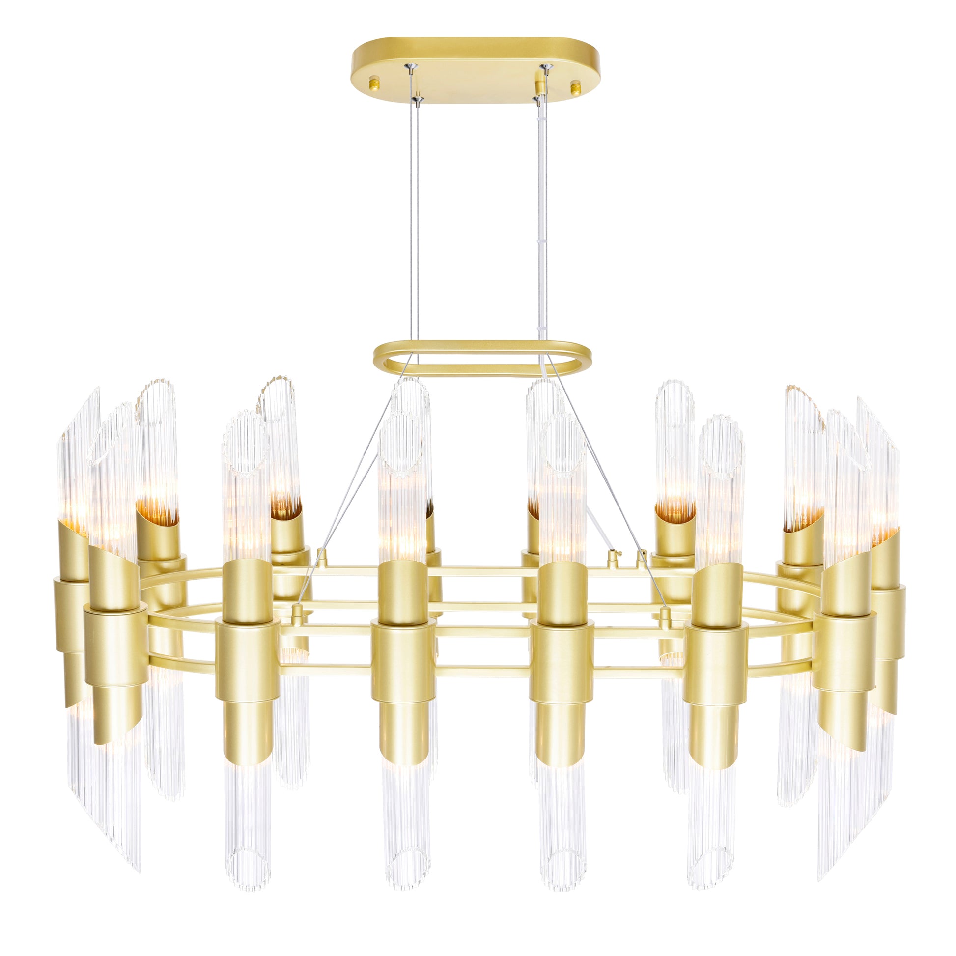 A light source of contemporary design, the Croissant 28 Light Oval Chandelier with its texture, clean lines, and metallic element can bring a comfortable yet bold ambiance to your space. Use this not just for illumination but also for defining the atmosphere in a room. Ideal for the dining room and kitchen, this 39 inch long chandelier in satin gold will make a stunning visual statement wherever you place it.
