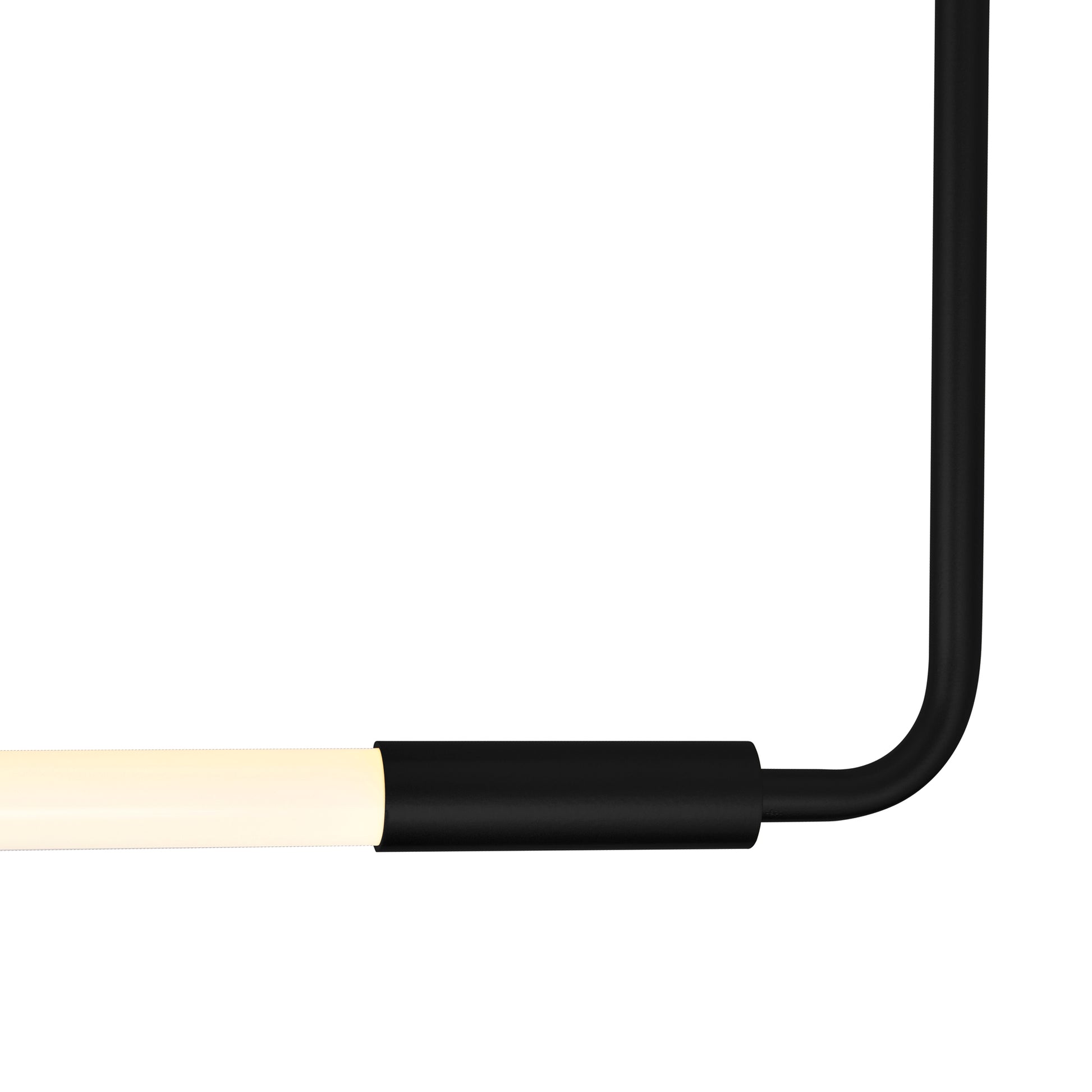 Give that empty vertical space a warm yet cool twist with this 2 Lights Geometric Chandelier from the Hoops Collection. Its striking profile is characterized by a linear LED bulb intersecting with a slim LED ring. Both sources of illumination are held by metal downrods suspending from a black rectangular canopy. This is one lighting fixture that will catch the eye without looking overwhelming.