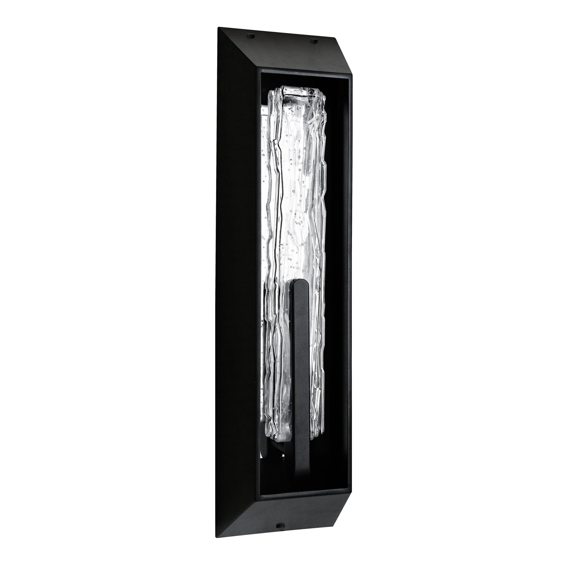 Redefine your home’s curb appeal with the Curva Integrated LED 24in Outdoor Wall Light. This mid-sized masterpiece from our luxury outdoor collection balances bold architectural lines with the delicate, organic beauty of artisan-crafted elements. Standing at 24 inches, it is perfectly scaled to illuminate entryways, flank garage doors, or line modern walkways with a sophisticated, high-end glow. The Sand Black finish offers a deep, matte texture that provides a sharp, contemporary contrast to the handcrafted glass core. This thick, sculptural glass is characterized by its unique "rippled ice" texture and infused seed details, ensuring that each fixture disperses light in a captivating, one-of-a-kind pattern. Designed with versatility at its core, the Curva allows you to customize your lighting environment with 5 CCT selectable options. Whether you prefer a warm, candle-like ambiance at 2700K or a bright, security-focused daylight at 5000K, the integrated technology puts total aesthetic control in your hands.