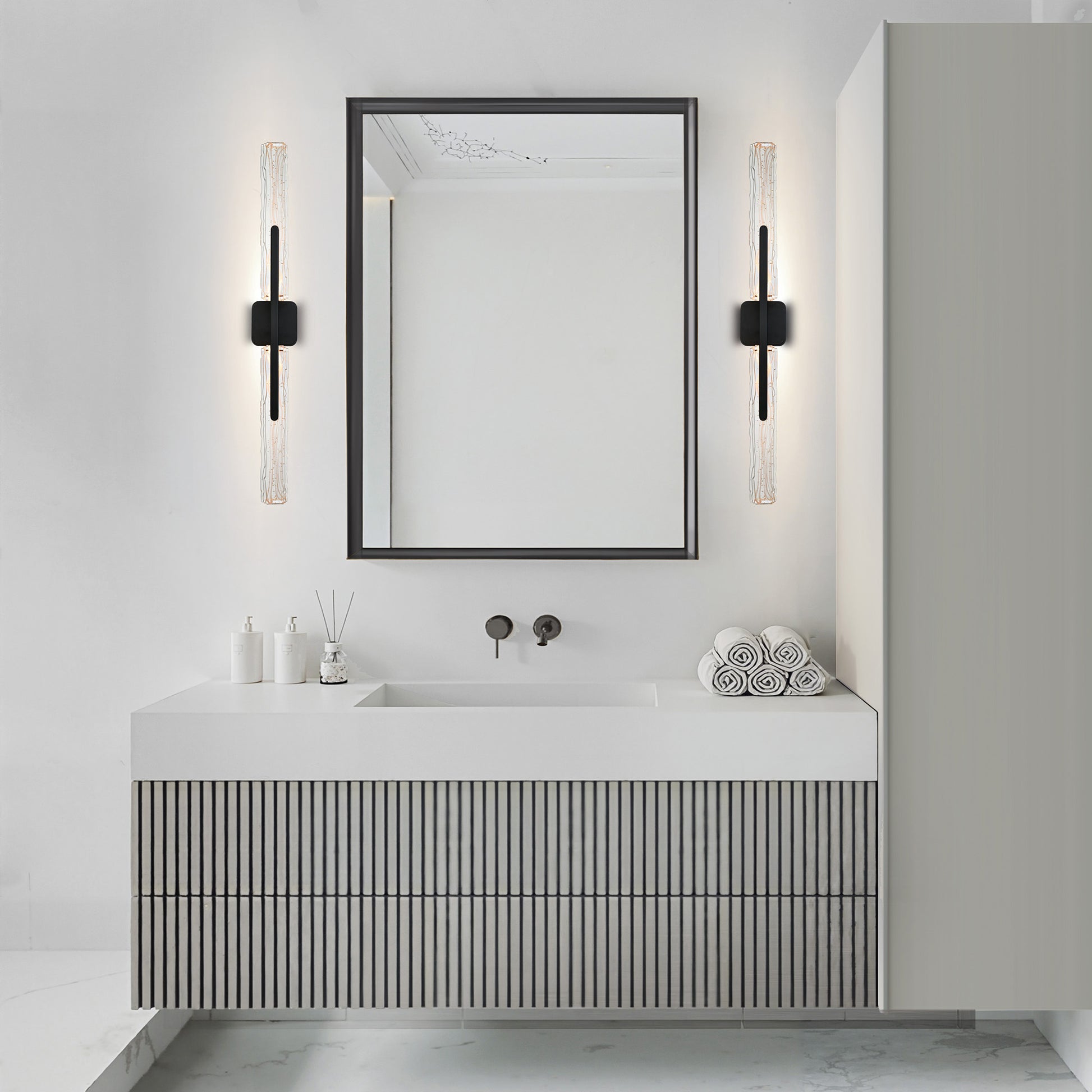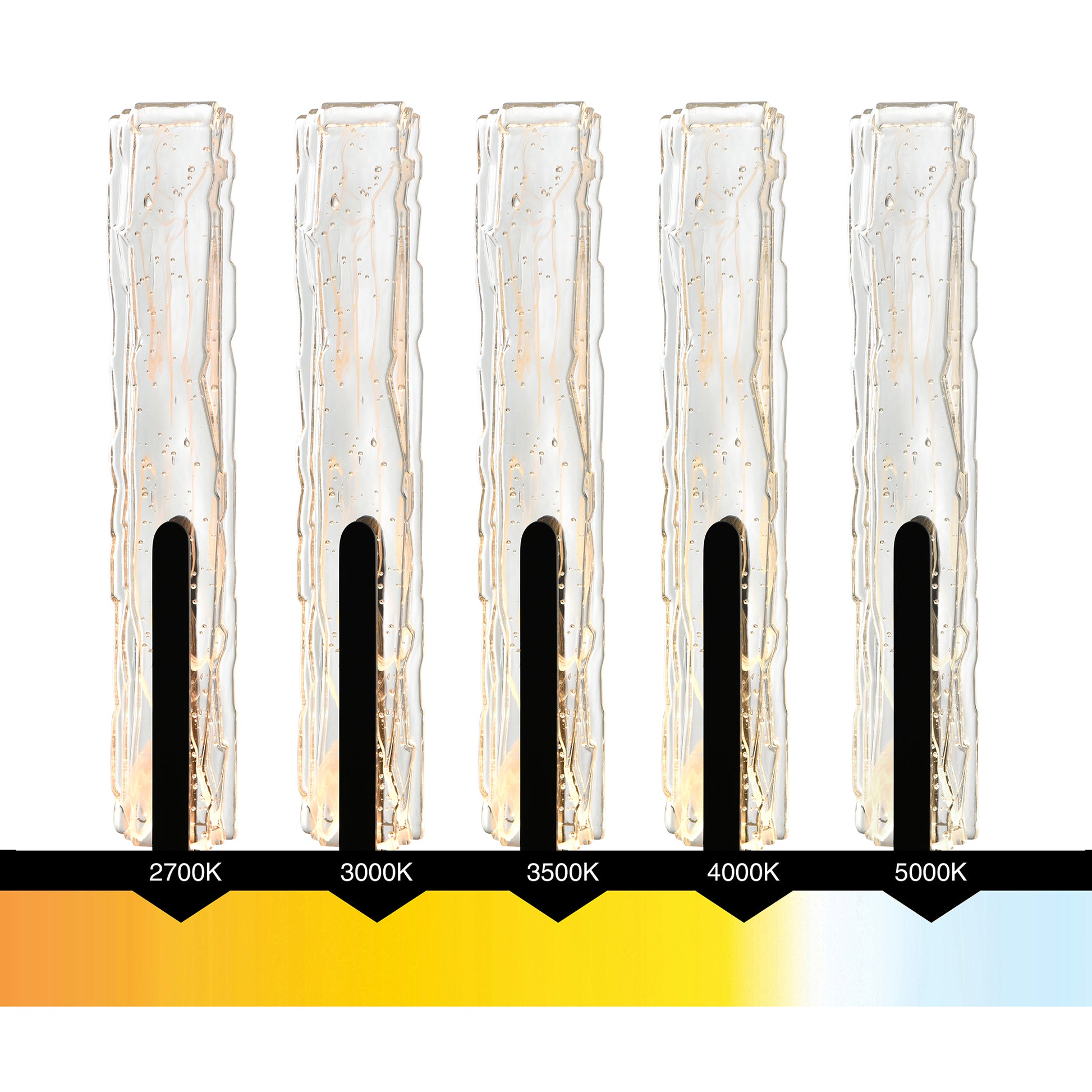 Experience the intersection of organic artistry and modern engineering with the Curva Integrated LED Wall Light. Measuring 36 inches, this luxury fixture features a striking vertical silhouette that serves as a functional piece of sculpture for both interior and exterior spaces. The centerpiece of the Curva is its handcrafted glass, meticulously textured with fluid, crystalline ridges and infused with delicate bubbles that catch the light from every angle. Set against a minimalist Sand Black frame, the light provides a dramatic, upward wash of illumination that highlights the natural imperfections and high-end quality of the artisanal glass. Designed with versatility at its core, the Curva allows you to customize your lighting environment with 5 CCT selectable options. Whether you prefer a warm, candle-like ambiance at 2700K or a bright, security-focused daylight at 5000K, the integrated technology puts total aesthetic control in your hands.
