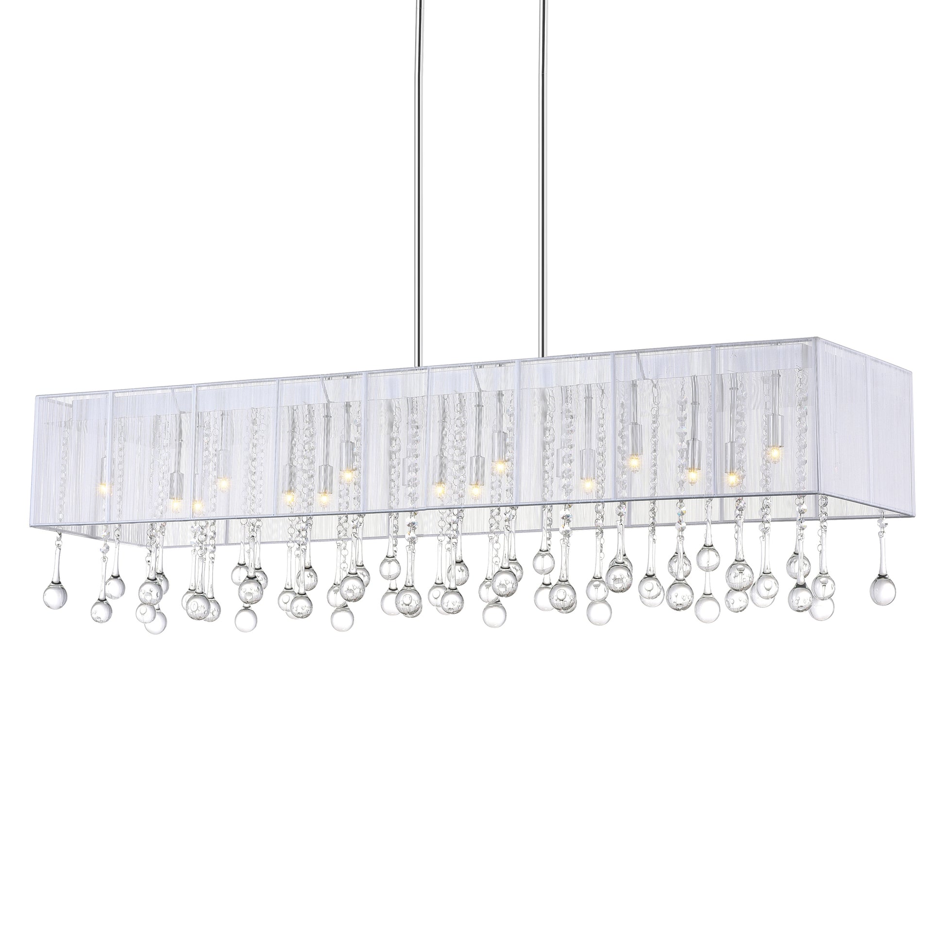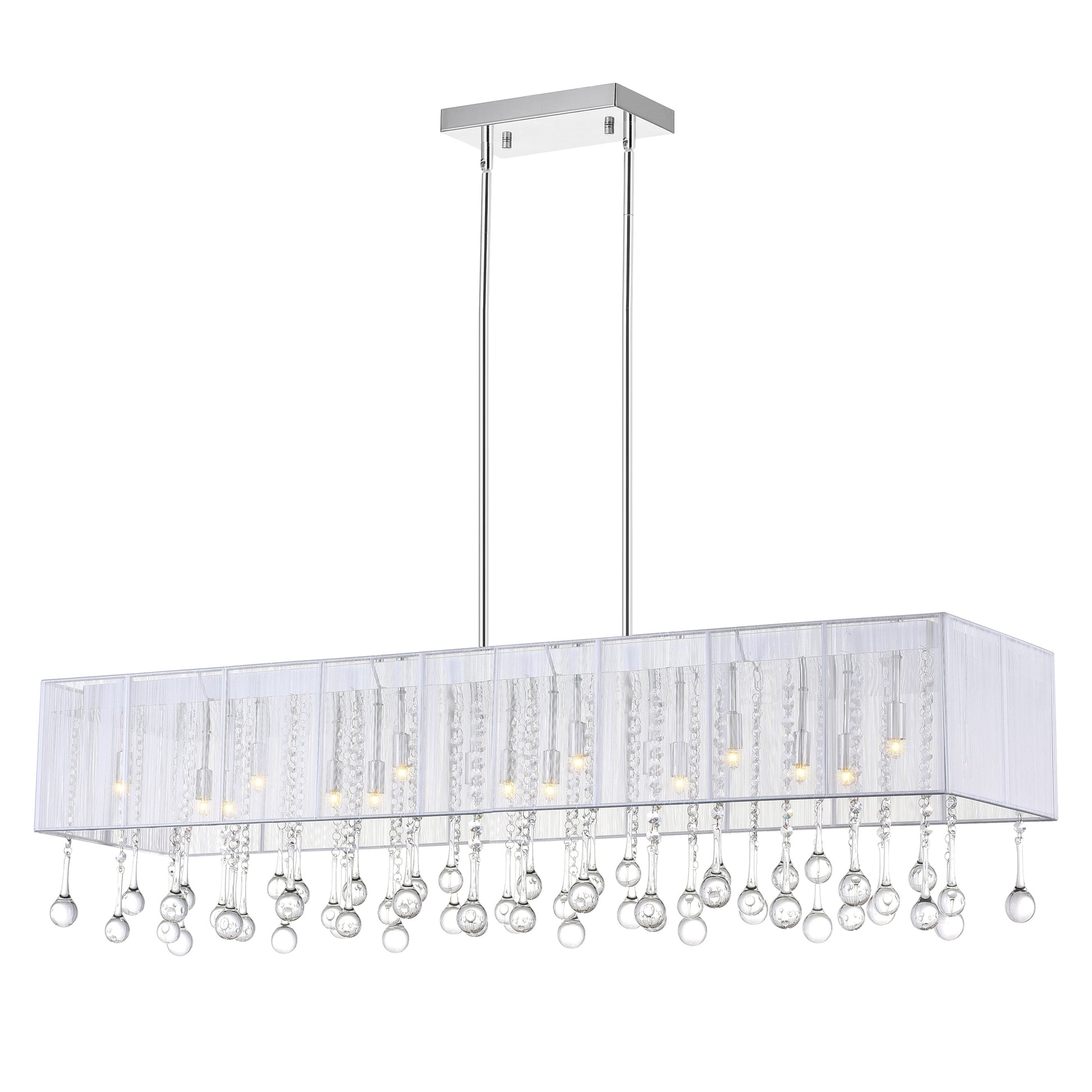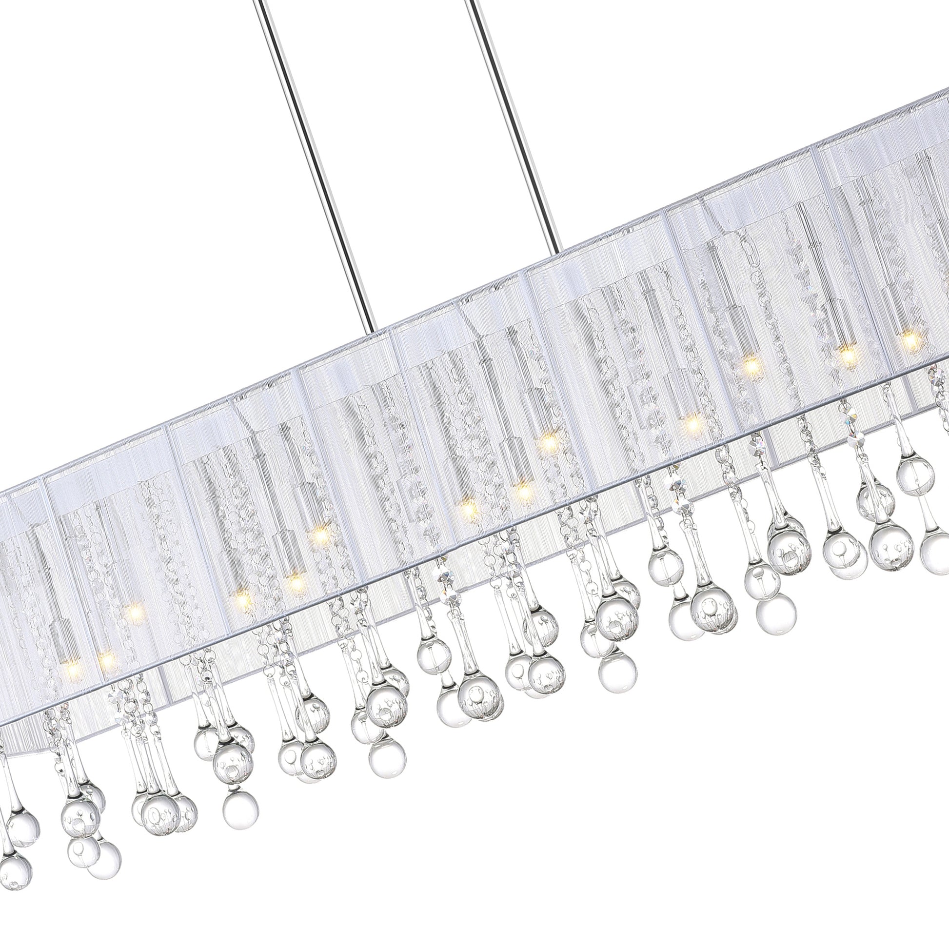 Grace and elegance define this Water Drop 17 Light Chandelier. This oversized light fixture is styled with a 48 inch rectangular shade in black, white or silver. Underneath are crystal teardrops dangling with finesse. Soft, warm light is diffused by 17 bulbs. Switch up to this lighting option and impress your guests with the improved aesthetics of your space.
