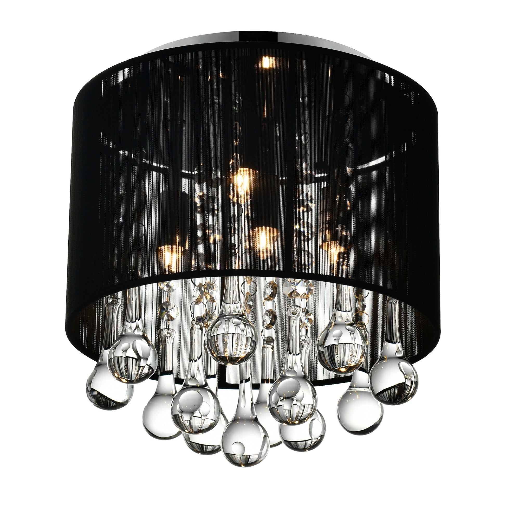 Water Drop 4 Light Chrome Flush Mount With Black Shade