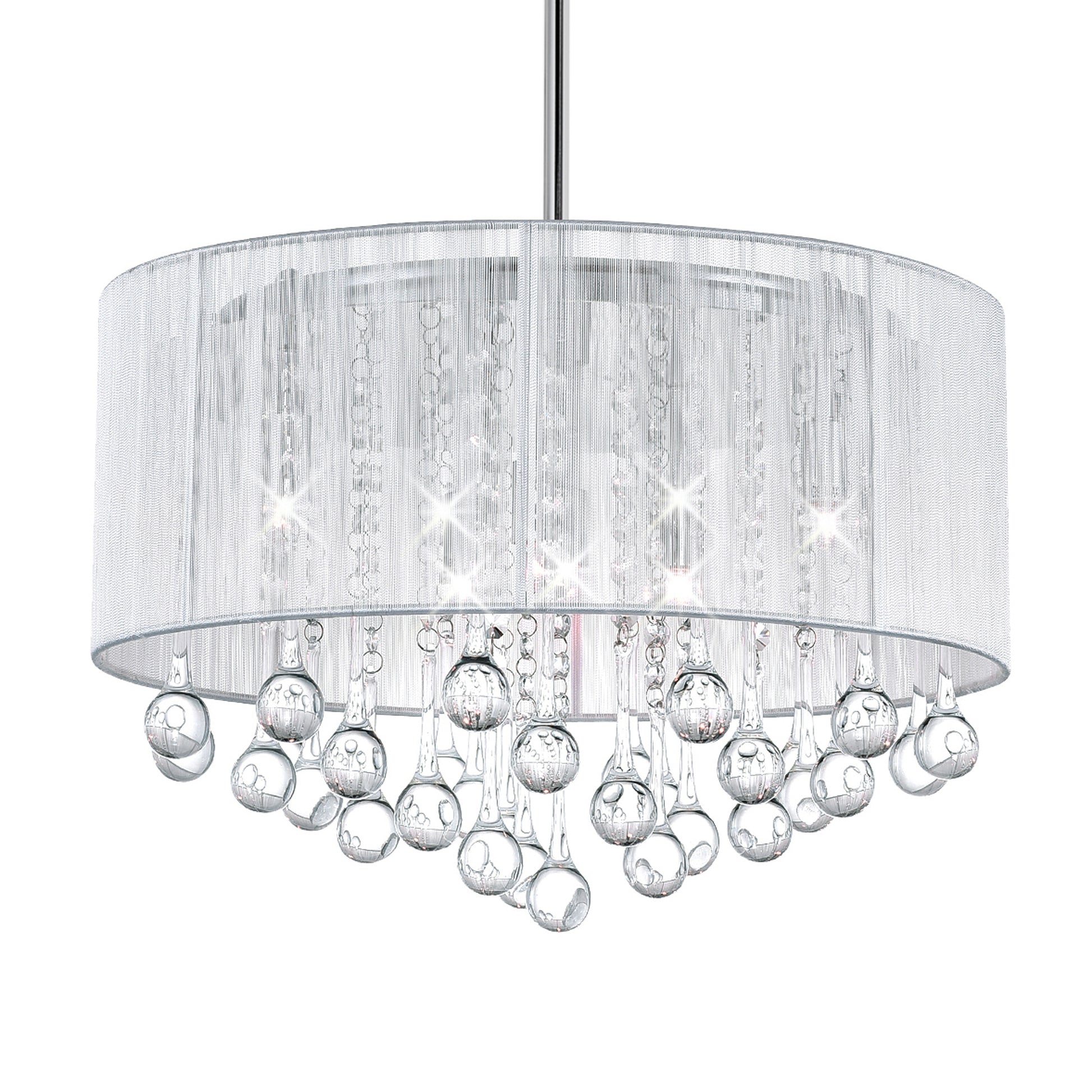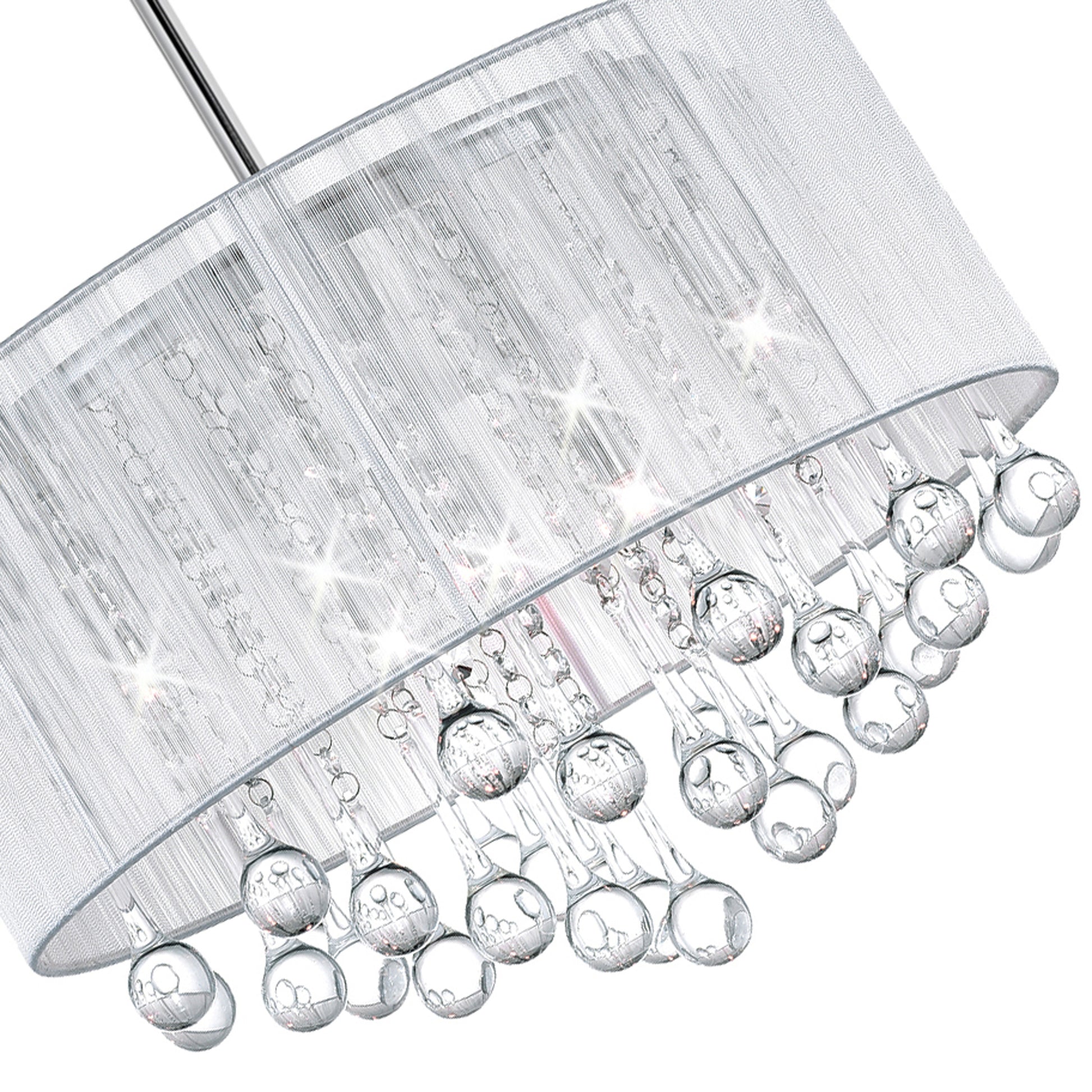 Indulgent as it is beautiful, the Water Drop 6 Light Chandelier assures you of an intimate ambiance. Designed with magic and romance in mind, this 18 inch drum shade chandelier offers the right amount of light and whimsical beauty. Pick the White Shade for elegance that's classy and pure, the Silver Shade for modern sophistication, and the Black Shade for a bolder design with a hint of drama.