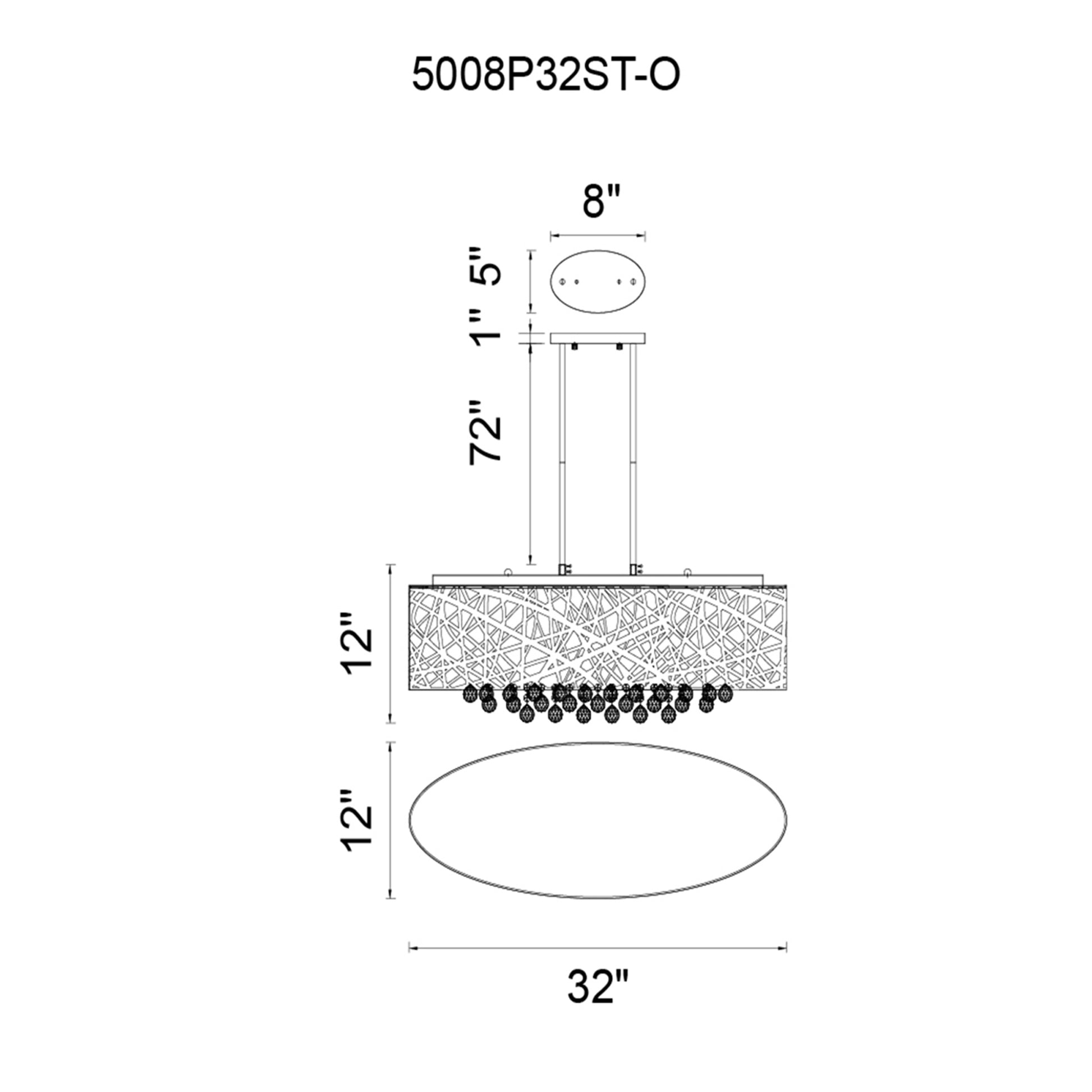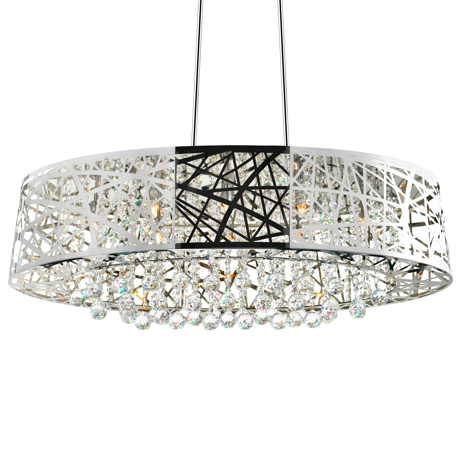 Bring sparkling elegance to your food prep area with the Eternity 8 Light Chandelier. Your mostly white kitchen will come to life with the presence of this chrome drum shade with dangling clear crystal beads. The 32 inch long textured shade will lend shape and drama to the plain white backdrop of cabinets. This modern light fixture has eight bulbs to provide task lighting above your kitchen workspace.