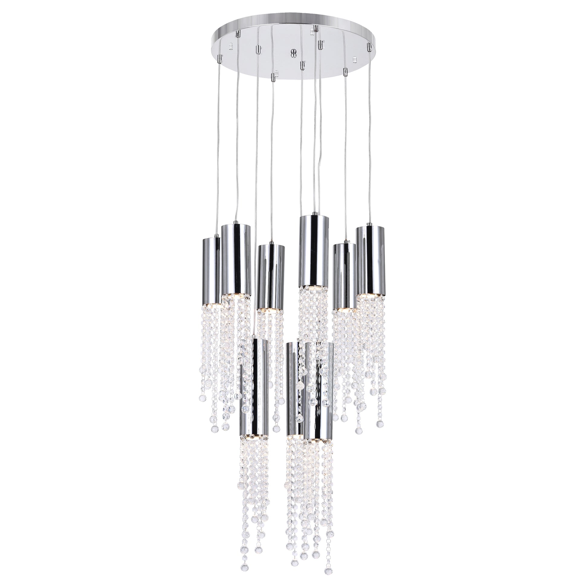 Sleek and slender, the Extended 9 Light Chandelier throws a powerful punch with its twinkling glow. Its elegant appearance and flattering illumination can surely give your space a luxurious transformation. A 20 inch canopy in polished chrome holds nine bulb-holding tubes with dangling crystal beads. Fancy but not overwhelmingly ornate, this multi Light pendant has that enduring appeal that you can count on when you want to glam up your space without a ton of work and expense.