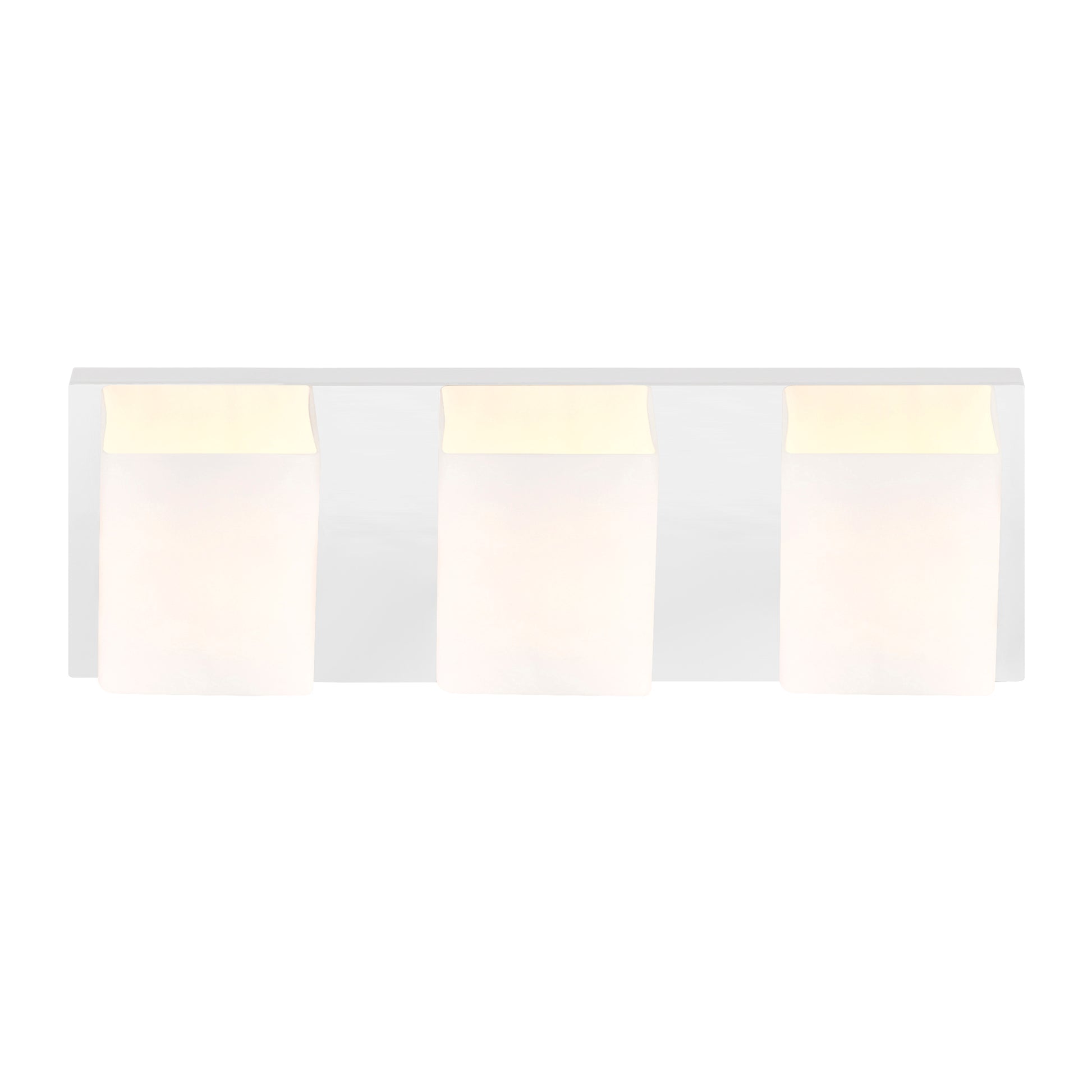 You'll love the versatility of this light fixture. The Satin Nickle 3 Light Wall Sconce comes with a satin nickel-finished rectangular backplate holding three off-white glass shades. This light source delivers a gently glow that's perfect for keeping a small space nicely lit. Situate this in the bathroom as vanity light or use it to illuminate a hallway.