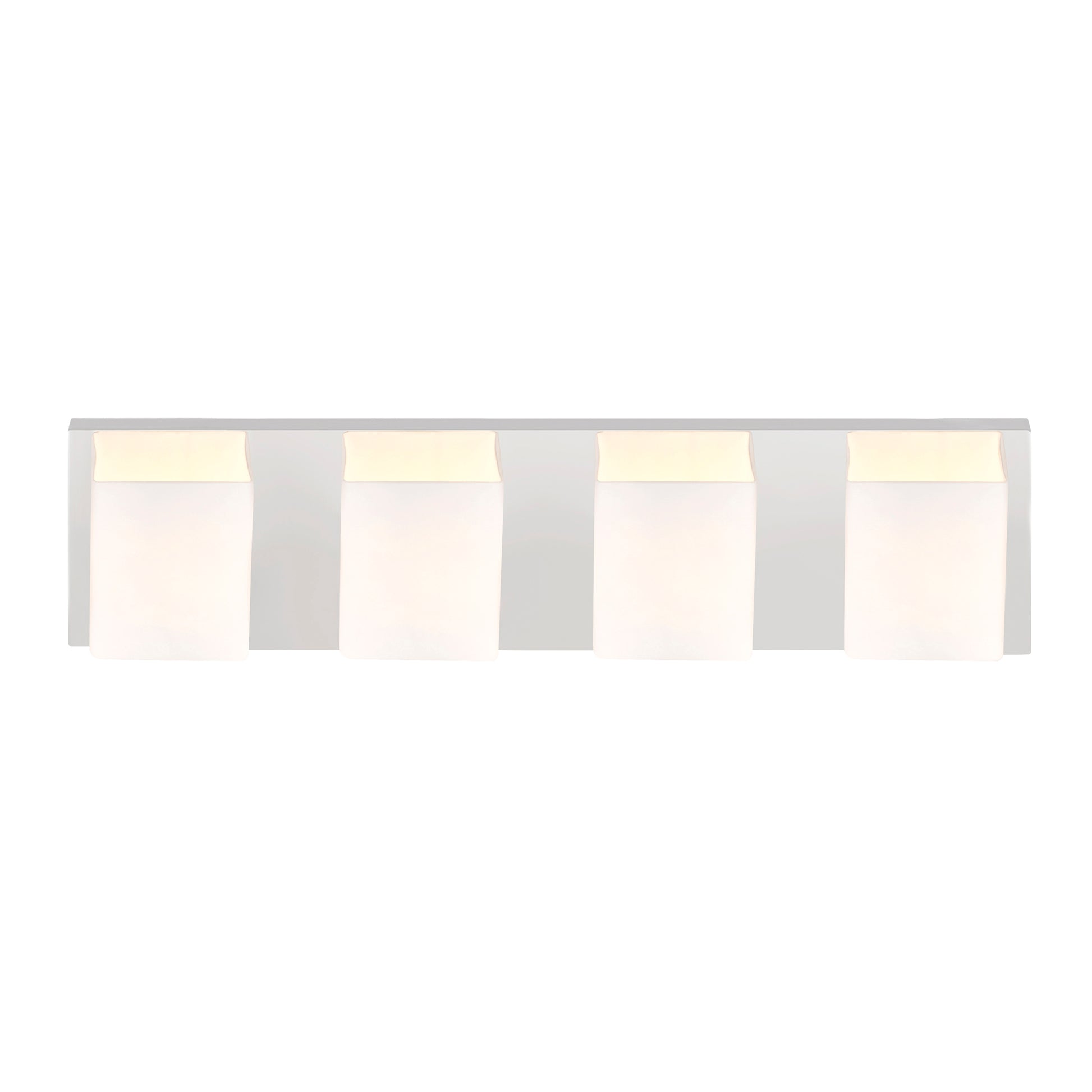 Need a stylish bathroom lighting? Choose the Satin Nickle 4 Light Wall Sconce. This 26 inch long bathroom sconce ticks all the boxes in terms of quality, design, brightness, and style. It has a durable metal hardware in satin nickel finish. The off-white boxy glass shades effectively deliver a nice glow. The neat and elegant profile makes this wall light suitable for different interior design schemes.
