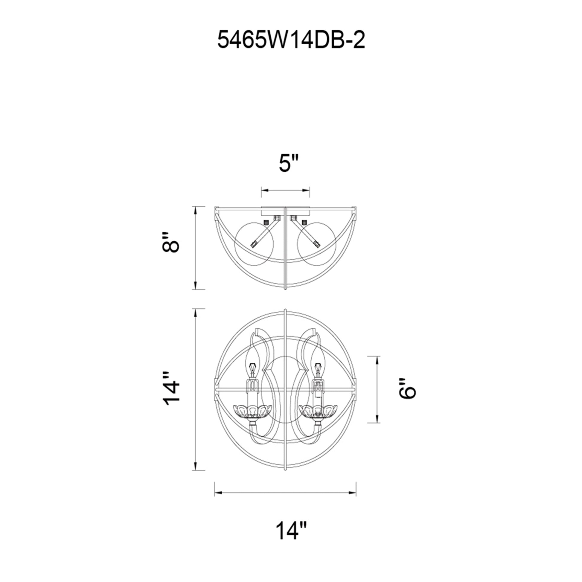 The Campechia 2 Light Wall Sconce is constructed with precision to create a style that's seamless. This wall-mounted light features a brown oval wall plate holding two candelabra arms housed on intersecting rings that form a cage-like half circle. Clear crystal beads dangle from the candelabras and complete charming look of this piece.