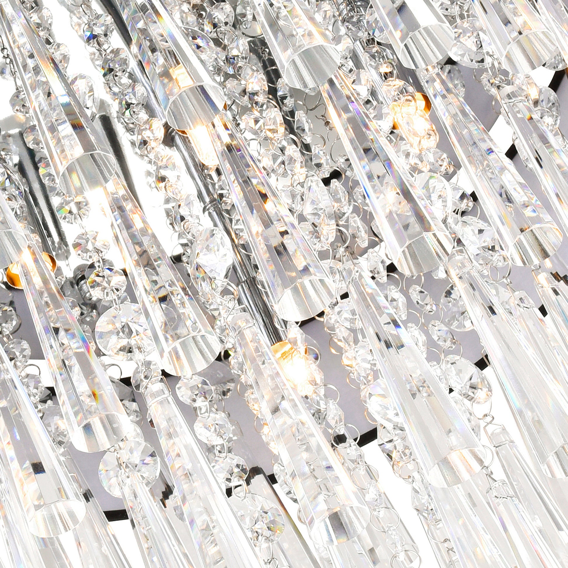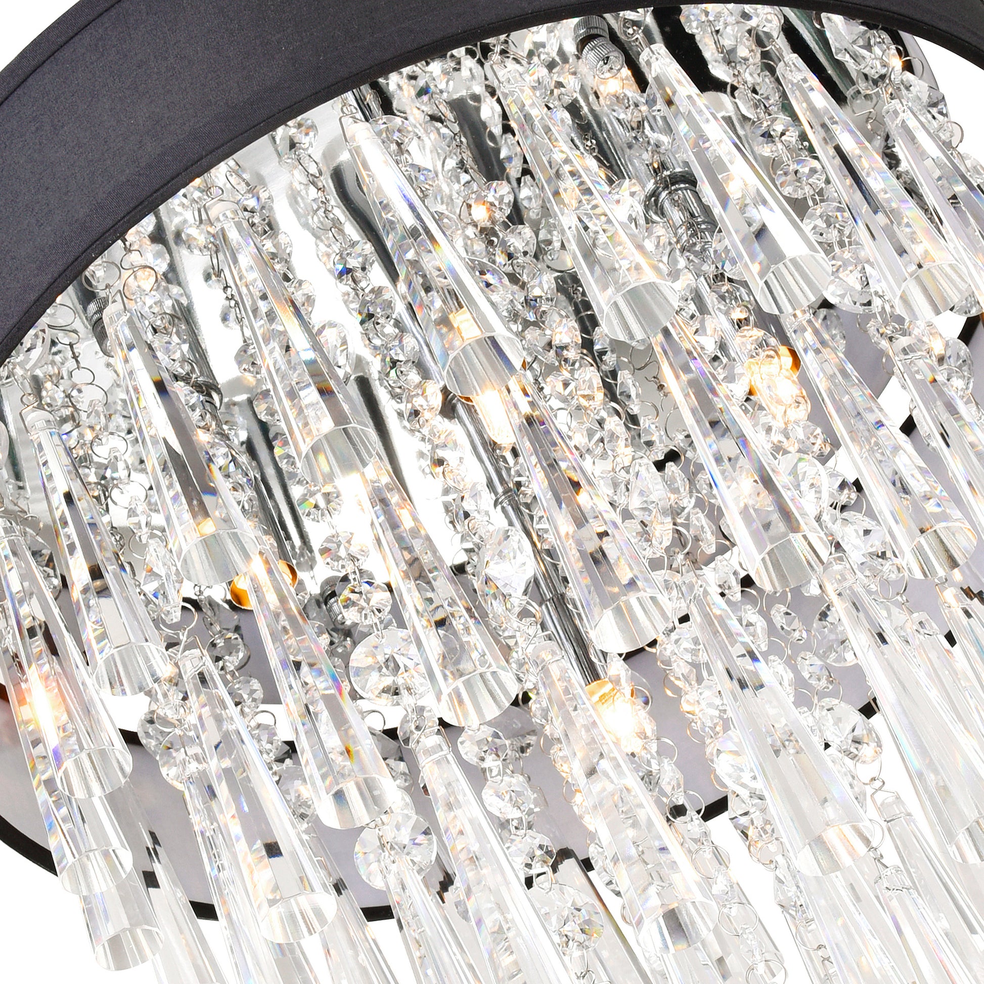 Bling it on! The Franca 8 Light Chandelier features clear glass drops that offer undeniable brilliance. Crystal droplets are held in place by a 22 inch drum shade, in off white or black, connected to an adjustable chrome rod with chrome canopy. This large drum shade chandelier is a glamorous choice for modern homes in need of a sparkling update.