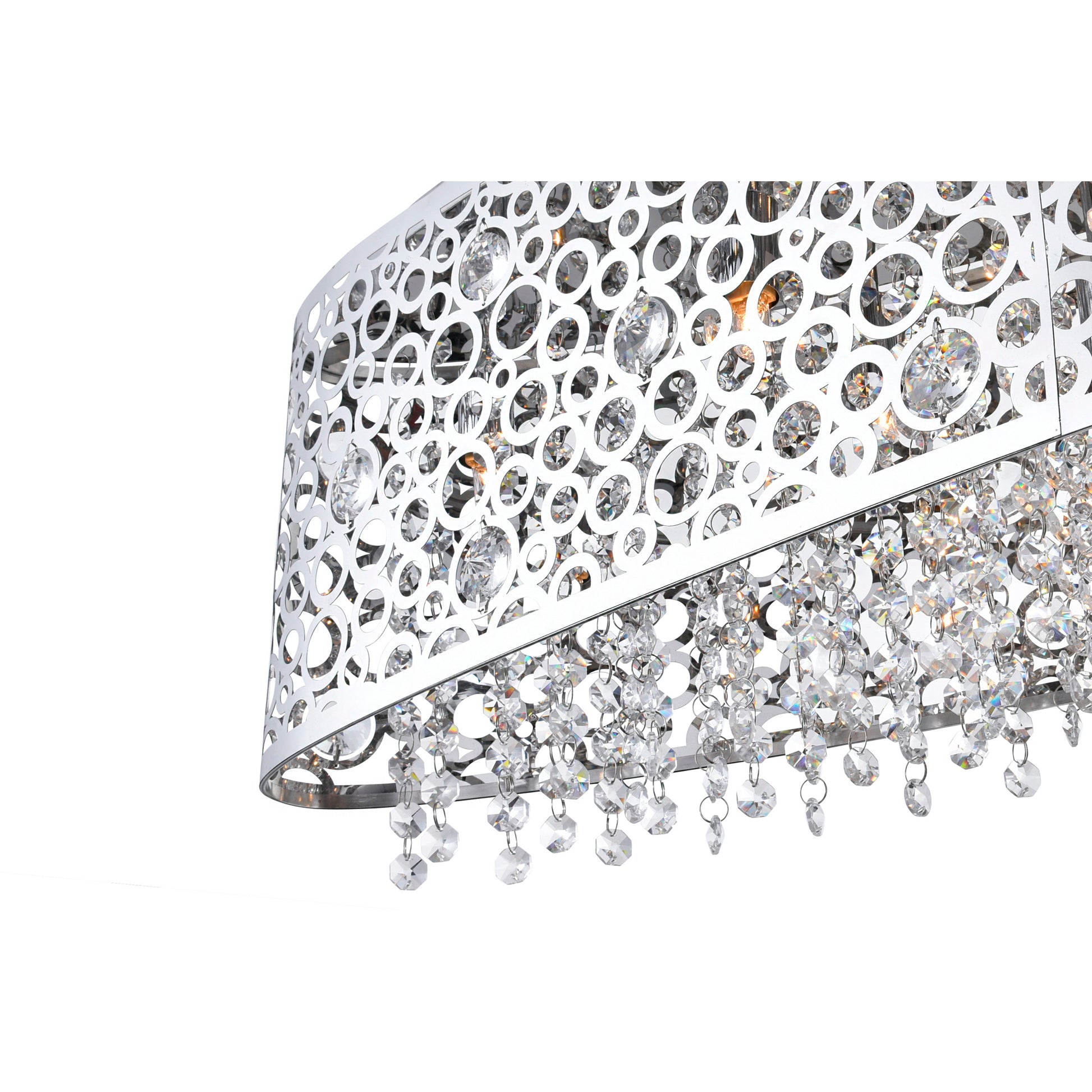 Adding this decorative light fixture to your interiors is a transformative design trick that's fast and easy to do. The Bubbles 16 Light Chandelier shimmers with grace and beauty with its laser-cut metal drum shade dripping with strands of tiny round clear crystals. Finished in chrome, this drum shade chandelier exudes a truly bubbly presence that's sure to liven up your space.
