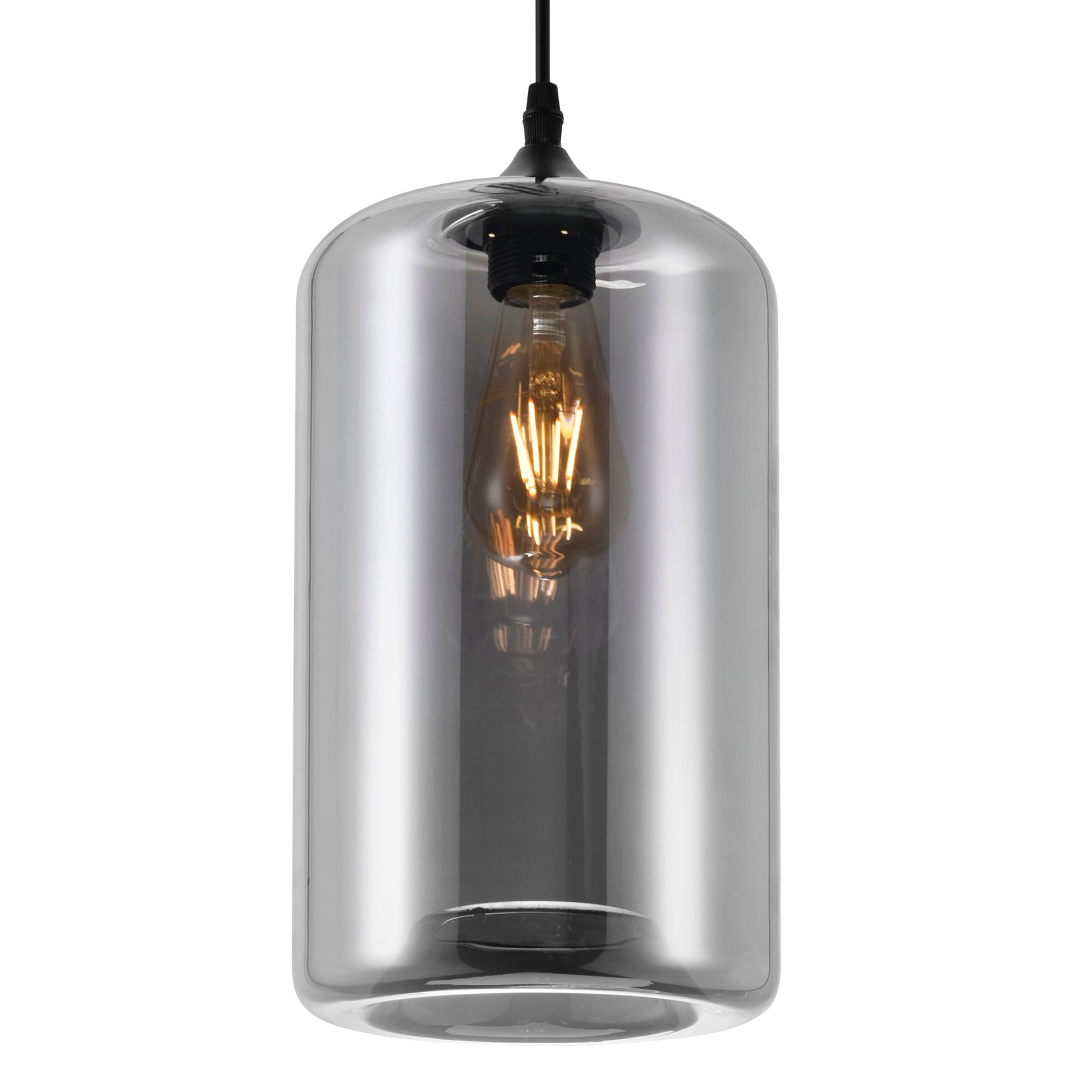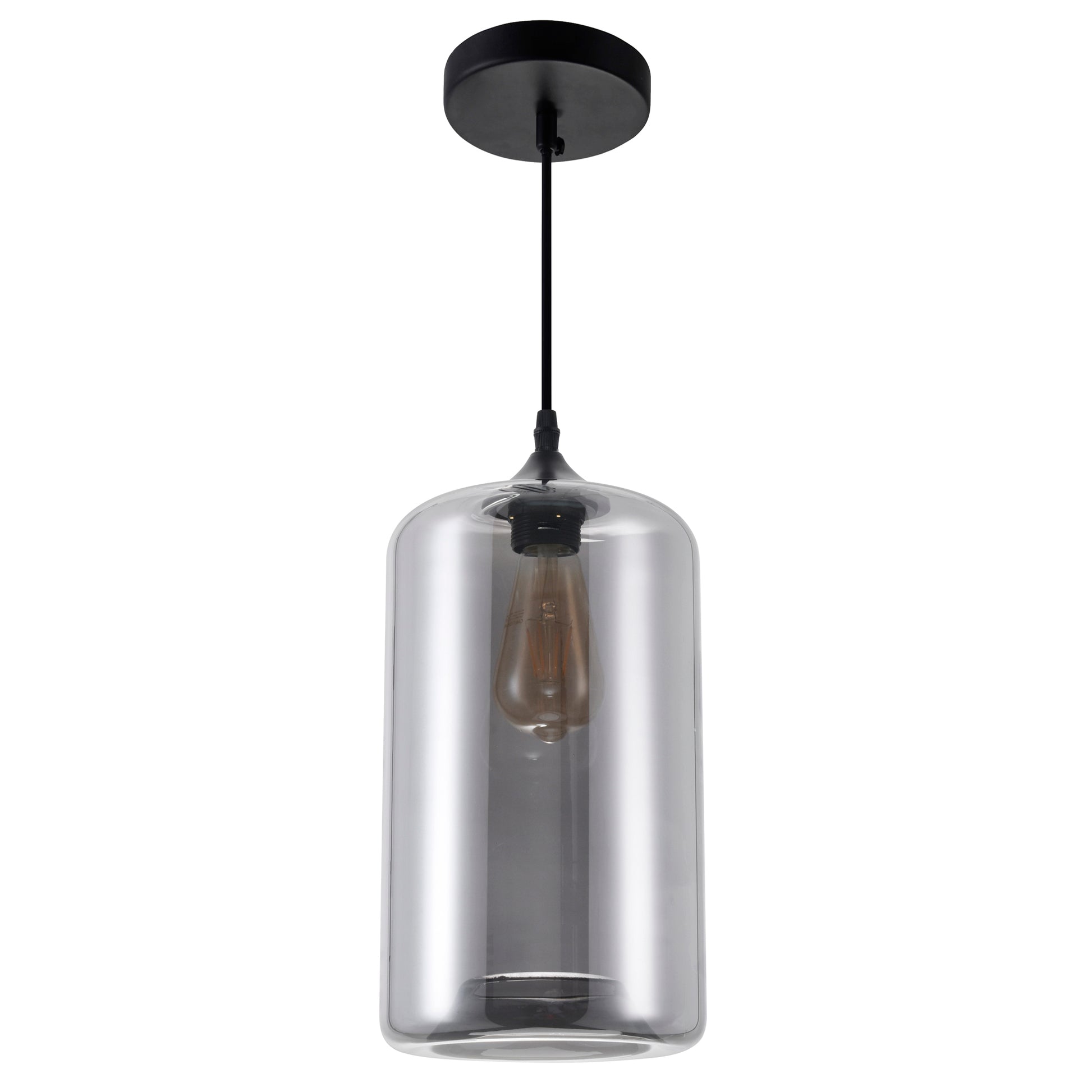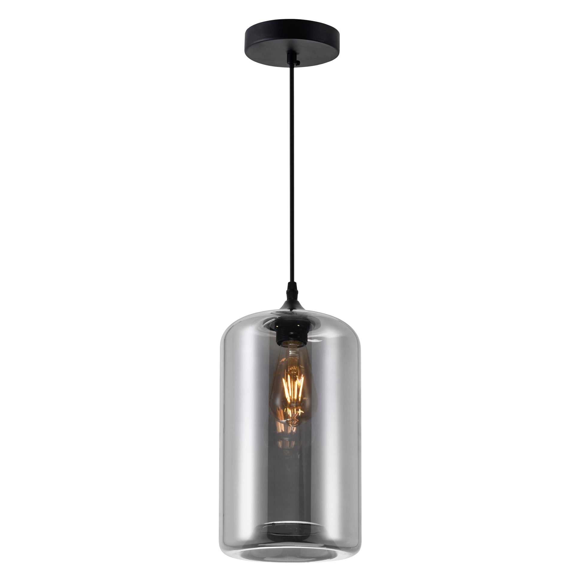 Add contemporary flair to your space with this mini pendant light, featuring sleek smoke grey glass shades and an adjustable black cord for customizable height. Perfect for kitchens, dining rooms, or bars, it provides balanced illumination and pairs easily with Edison, LED, or incandescent bulbs (not included). With its minimalist design and effortless installation, this fixture blends modern style with functional versatility.