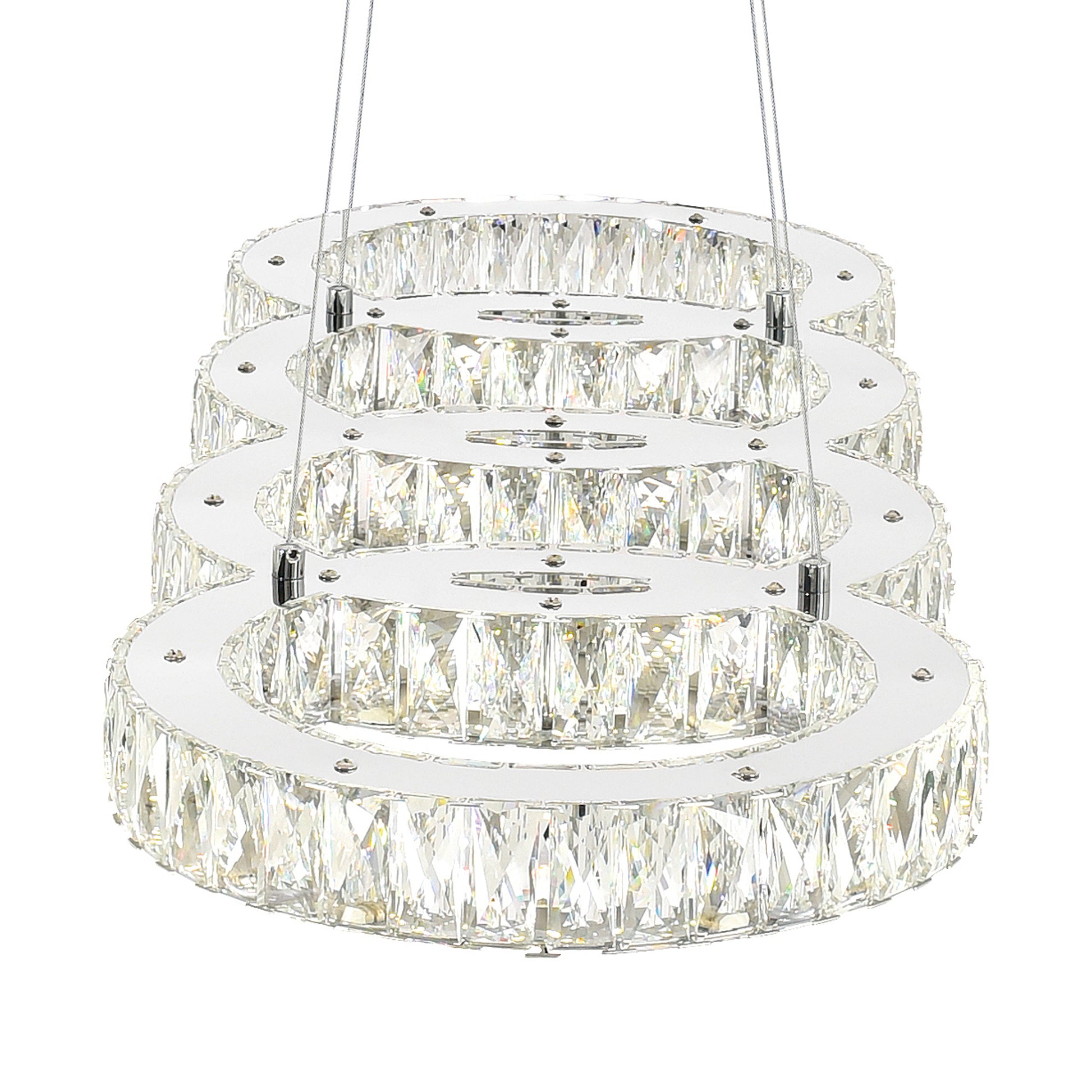 Mix the Milan 4 Ring Chandelier in your space with plenty of strong, straight lines and see it effortlessly soften the linear feel. Designed with a bold and intriguing profile, this opulent light fixture can help offset the angles and edges in a modern space. Add it to your interiors and let it bring some glitter and a touch of feminine charm.
