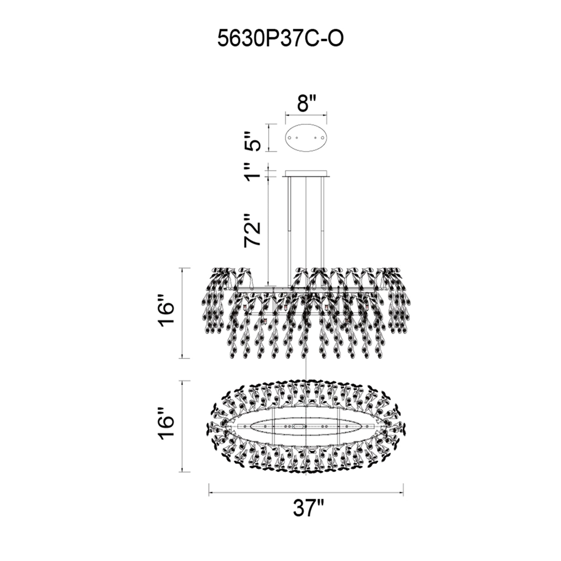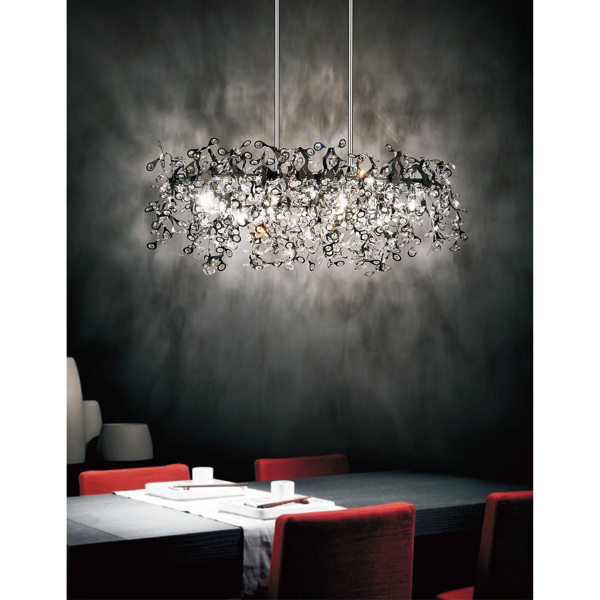 Transform your space with the sheer elegance and exuberance of the Flurry 7 Light Chandelier. This oversized down chandelier measures 37 inches wide and 16 inches tall. It features a circular metal frame surrounded by branching clusters of crystal beads. Seven G9 bulbs from within diffuse light that's soft yet bright. This is the funky-elegant finishing touch you need to glam up a space while giving it a playful and cozy vibe.