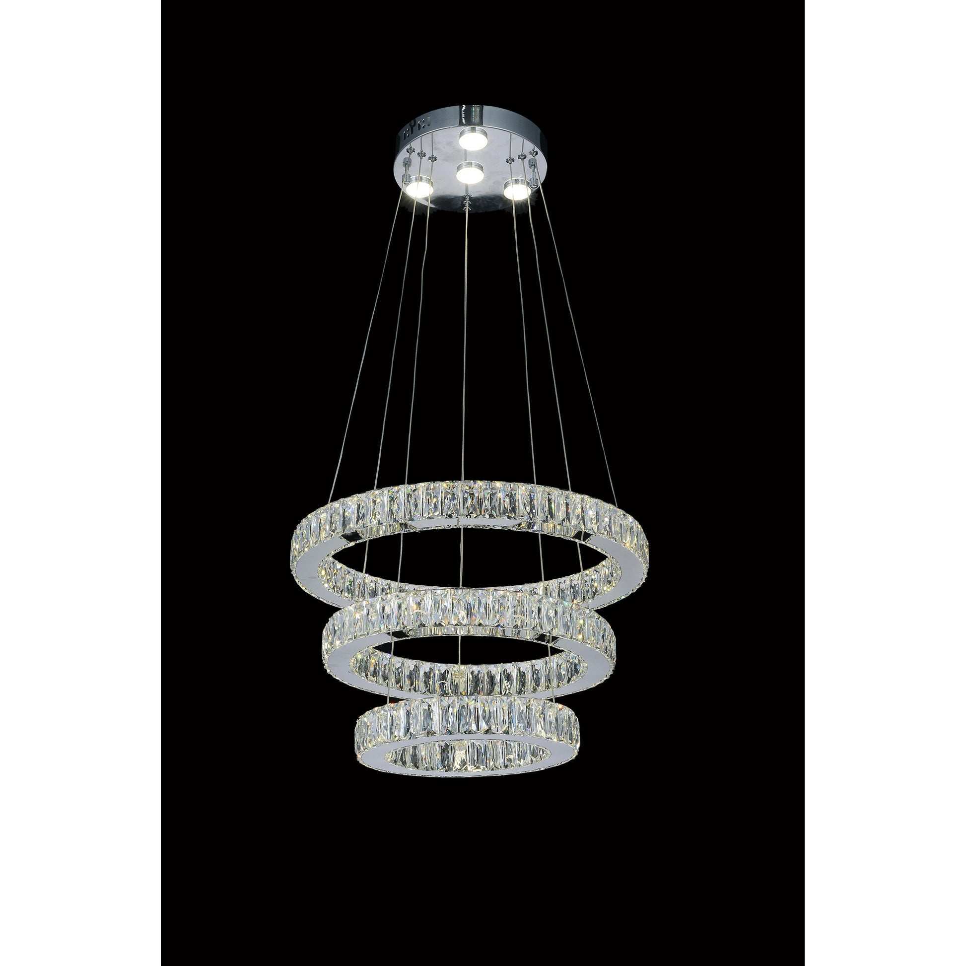 The Florence 3 Tier Ring LED Chandelier will give your space that Hollywood glam vibe. This glam light fixture has sparkling crystal beads on three concentric rings. Built inch LEDs diffuse bright, opulent light. Hang this in your foyer, stairwell, or high-ceiling living room for a brilliant impact that no one will forget.