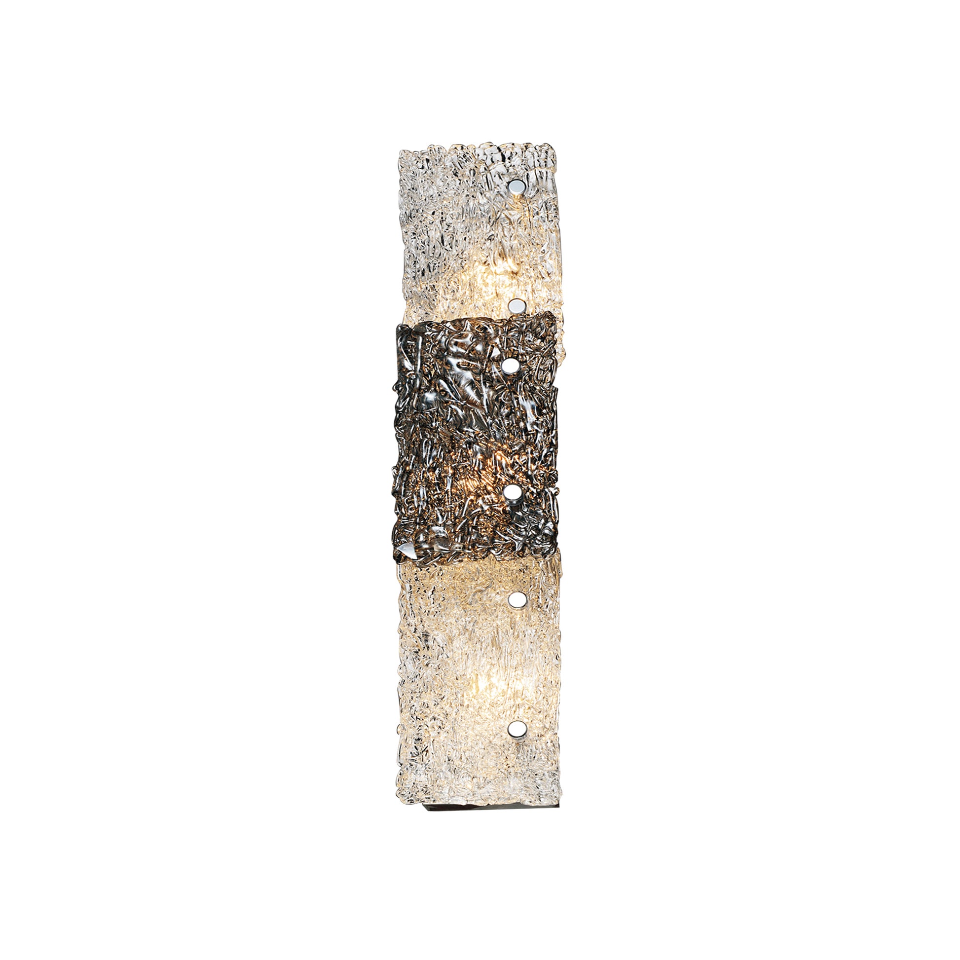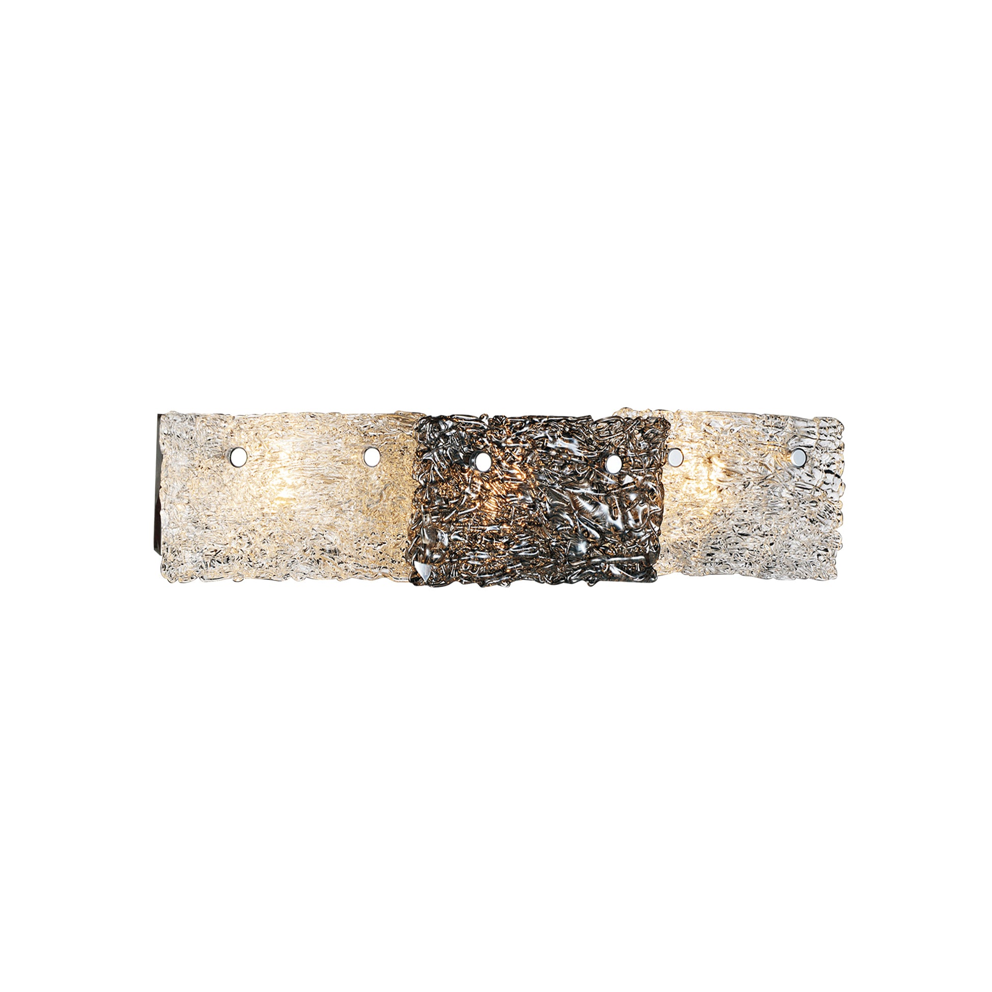The Wilma 3 Light Wall Sconce is a contemporary vanity light with a simple silhouette but with an interesting texture. It is designed with clear and smoke glass panels pinned together to hide three G9 bulbs from direct view. The rugged surface of the glass complements the soft and warm light that the lamp diffuses. A visual balance is achieved and it elegantly brings intrigue to a room.