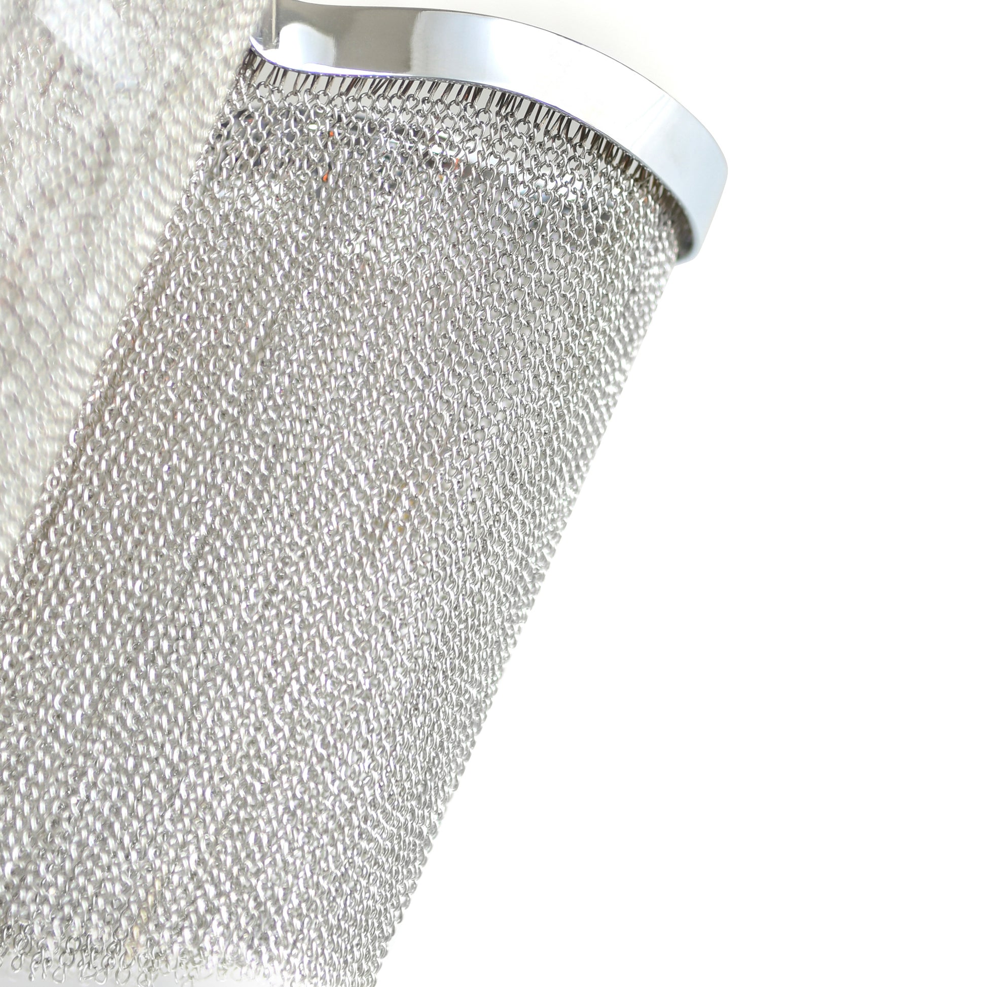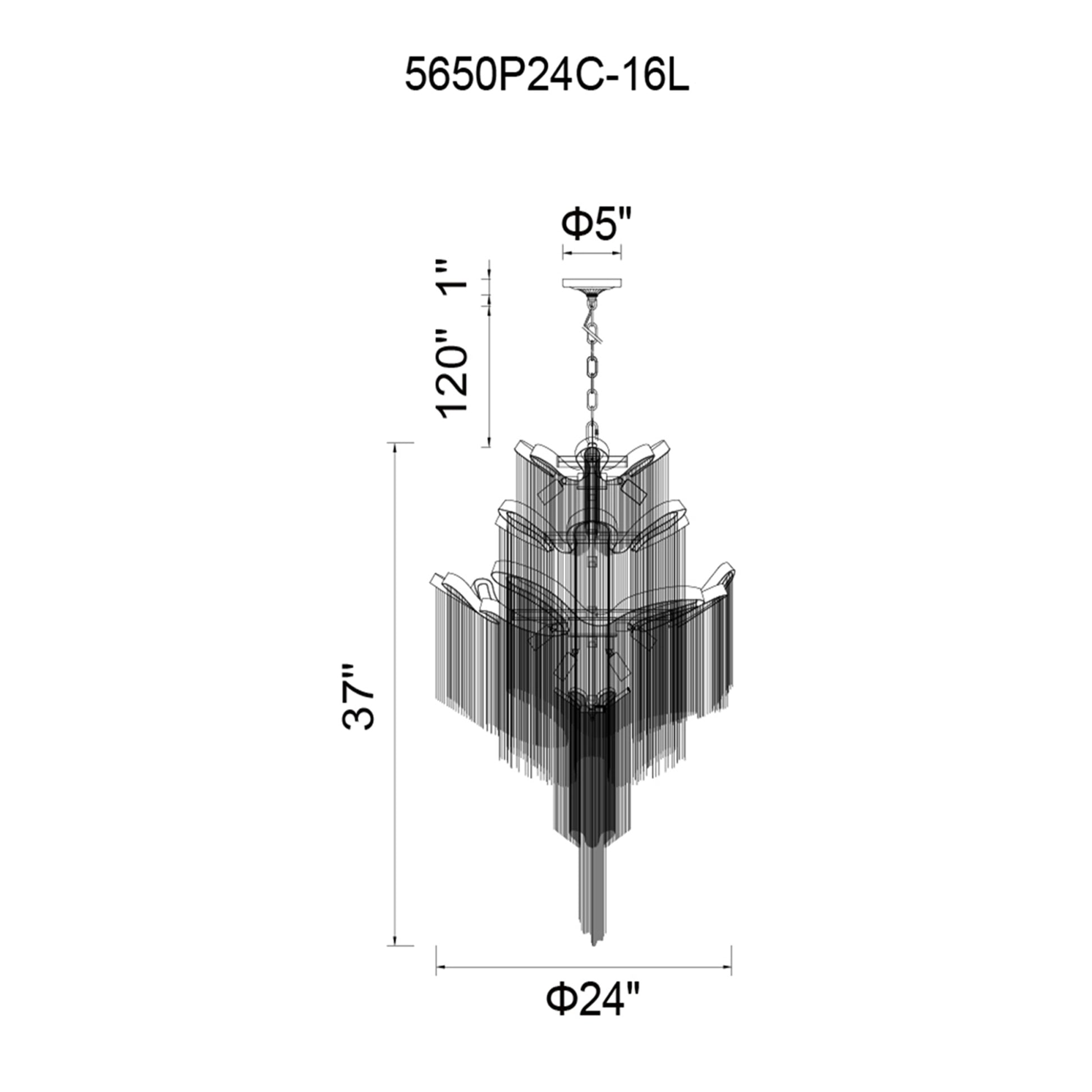 This Daisy 16 Light Chandelier can help you make the right first impression. Perfect for the entryway, this large down chandelier will shed some glam light on the first steps into your home. This long, tiered, and artistic light fixture offers dramatic lighting through its soft curves, dainty layers, and lustrous curtains of silvery strands. This foyer lighting is guaranteed to dazzle your guests.
