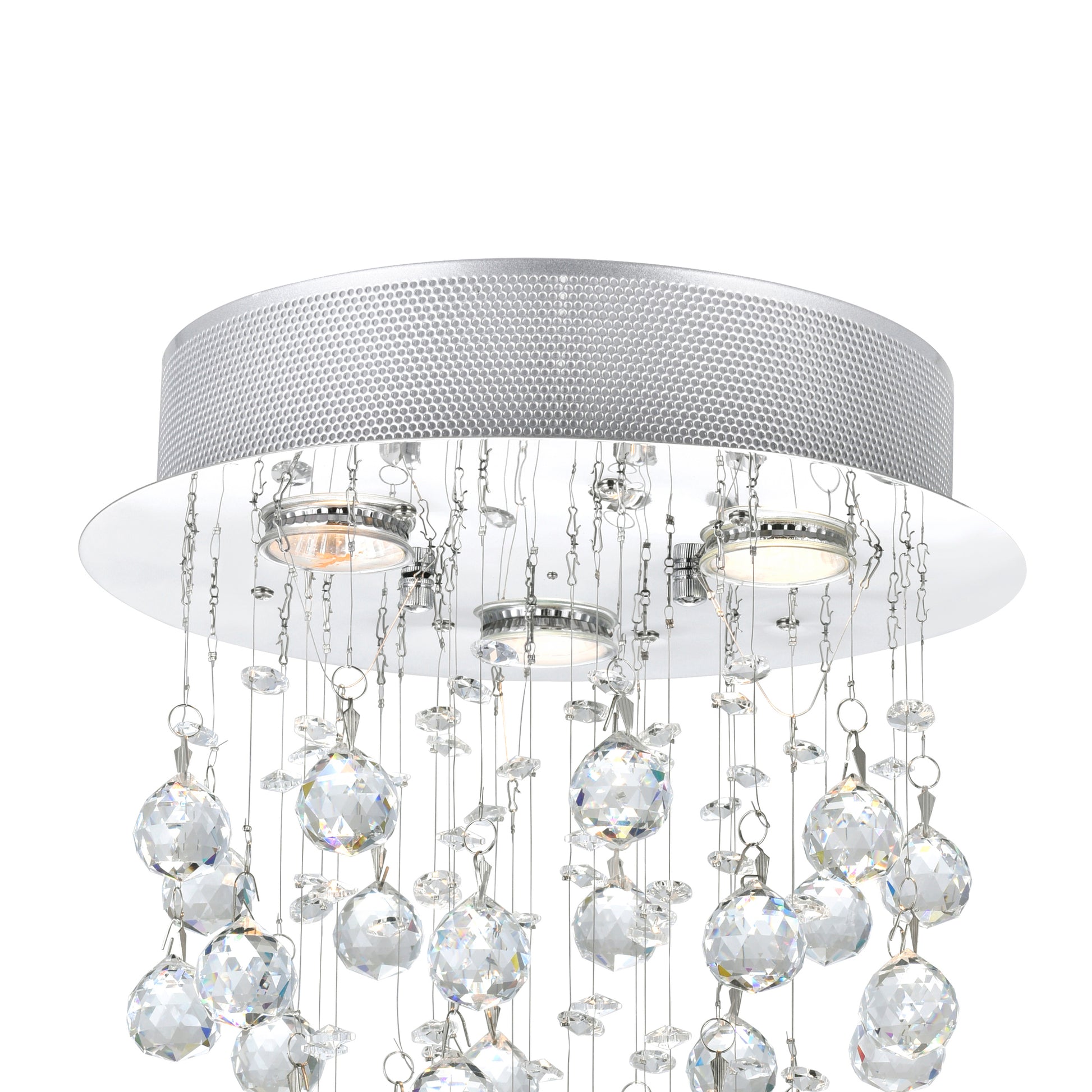 Maximize style without sacrificing space. The Rain Drop 3 Light Flush Mount is an elegant crystal chandelier designed specifically for smaller areas. With just the right touch of sparkle, its sleek, compact silhouette adds sophistication without overwhelming the room. Ideal for dining areas, living rooms, foyers, or bedrooms, this flush mount delivers the brilliance and charm of a full-size chandelierperfectly scaled for more modest spaces.