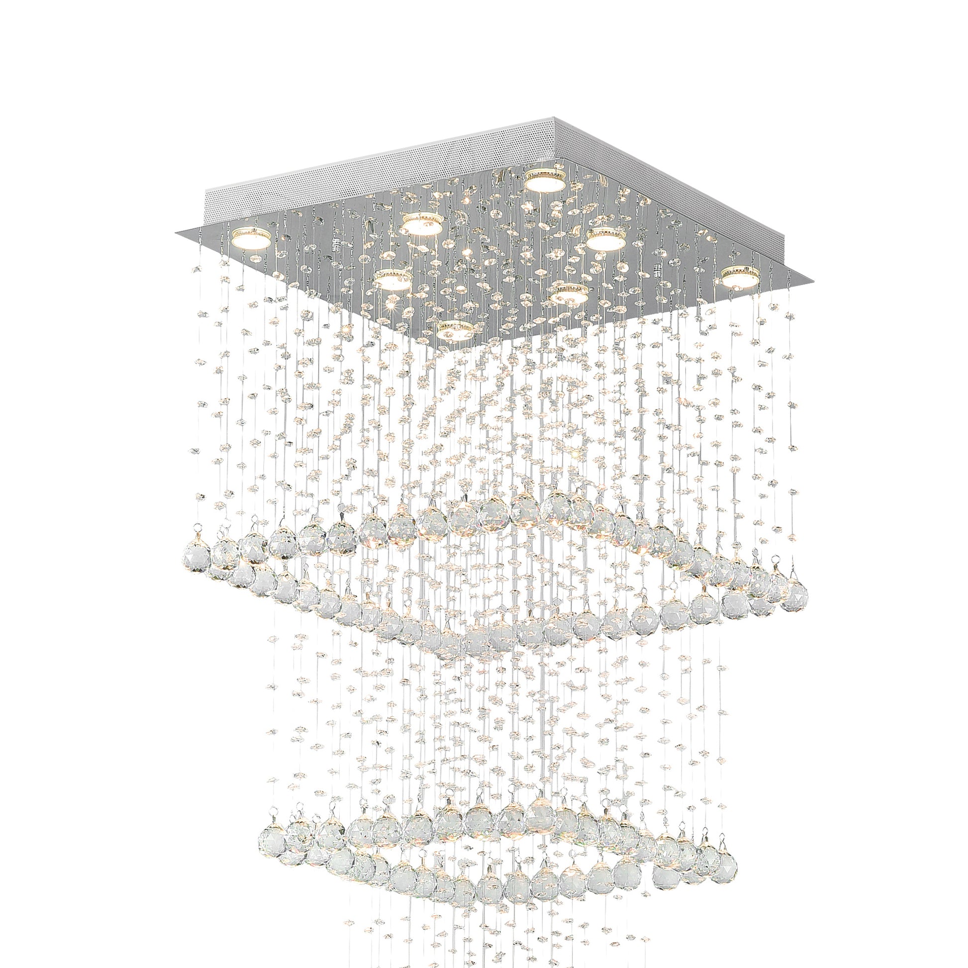 The Square 8 Light Flush Mount would make a stellar statement piece in your living room, entryway, or stairwell. This close-to-ceiling chrome-finished light source has four square tiers of crystal strands finished at the bottom tip with a single crystal ball drop. The fanciful design that sparkles day and night can clearly provide pizzazz to any space.
