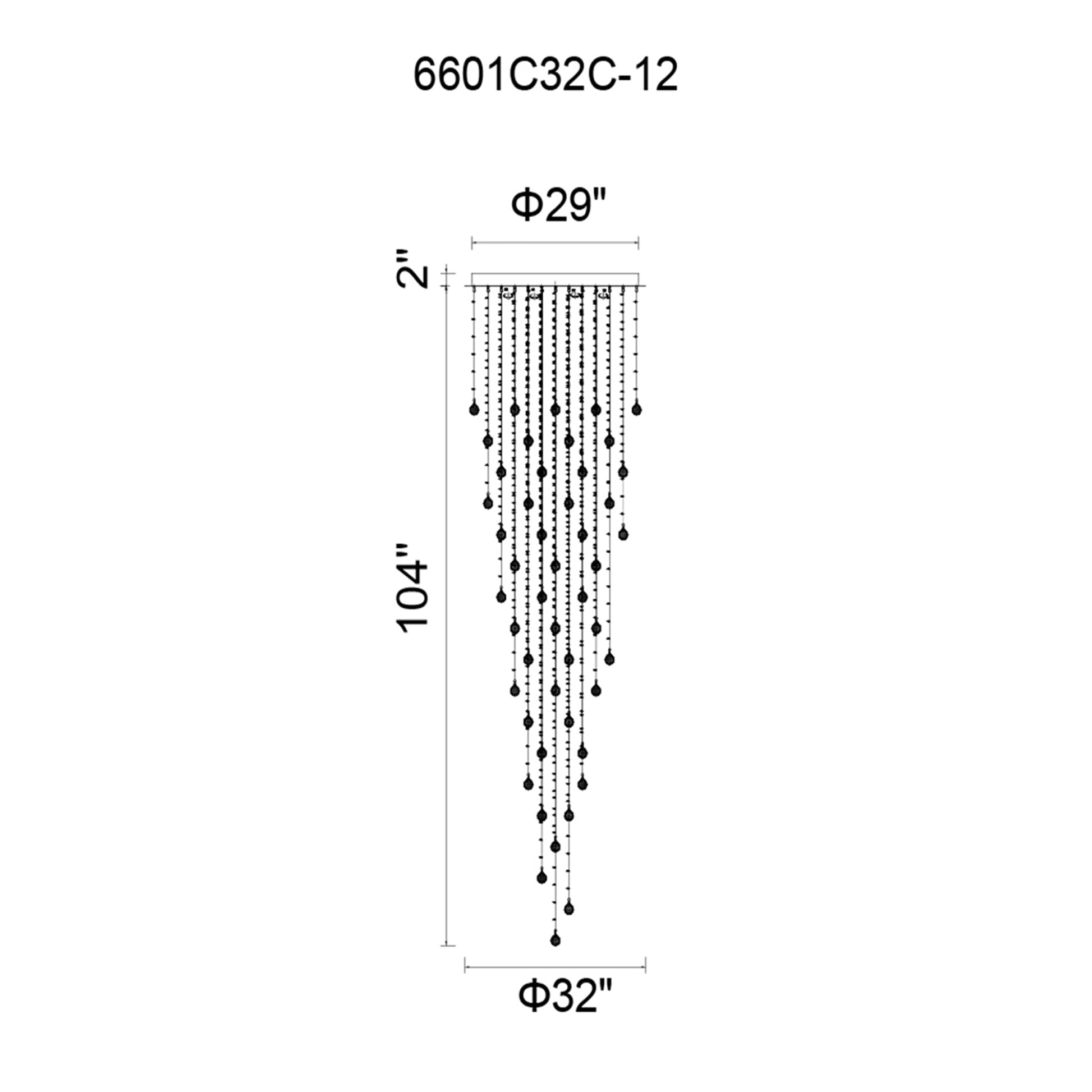 The Rain Drop 12 Light Flush Mount Chandelier is ready to deliver a big dose of glam to your space. Designed with a 32 inch round canopy in chrome holding strands of crystals measuring 106 inches long, this breathtaking light source won't disappoint in terms of glitter. Don't worry, it's brilliance won't overwhelm. The delicate silhouette softens the shimmer and perfects the elegant glow of this piece.