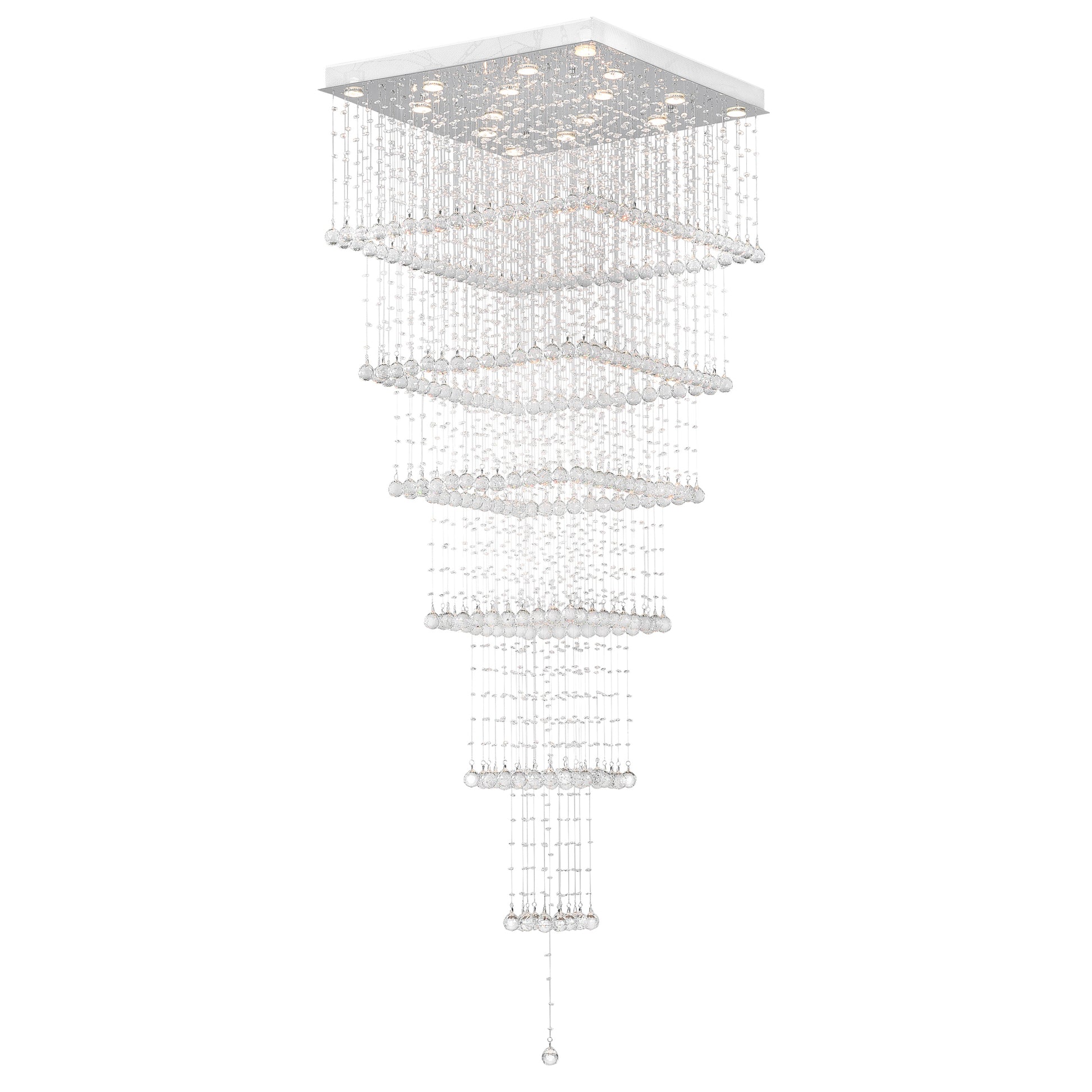 Get that glint of sunlight from this crystal chandelier. The Square 16 Light Flush Mount is a tiered crystal chandelier with a square canopy in chrome. Dropping from it are six tiers of hanging clear crystal strands. Offering bright but soft light, this fixture will effortlessly glamorize your home with sparkling detail. This light fixture is ideal for entryways and stairwells.