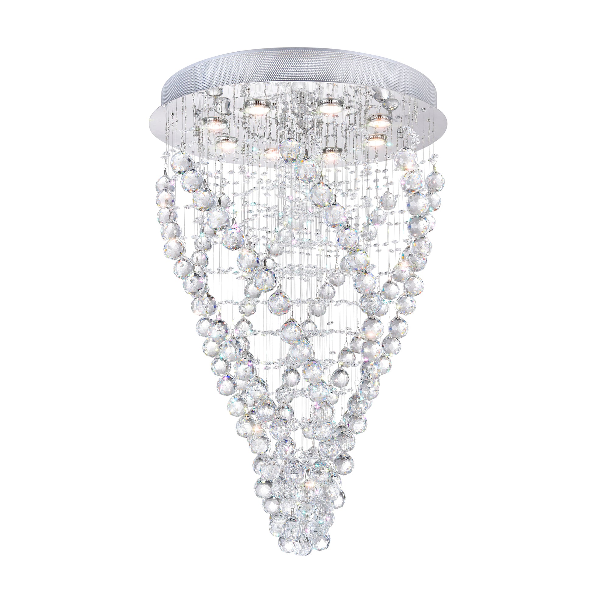 Enhance the atmosphere in a humdrum space with the Twister 8 Light Flush Mount Chandelier. This light source is designed with a 24 inch round canopy in chrome finish holding glittering strands of crystal beads. The crystal strands form a twisted silhouette for a glam style that's sophisticated yet playful. Invest in this statement piece and effortlessly add a dose of sheer elegance to your space.