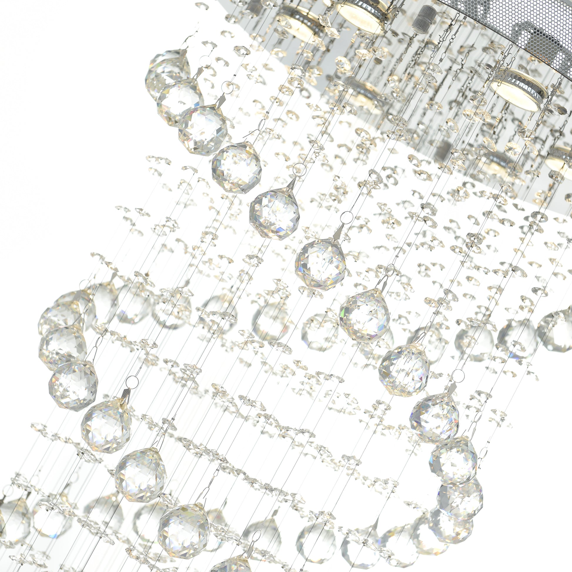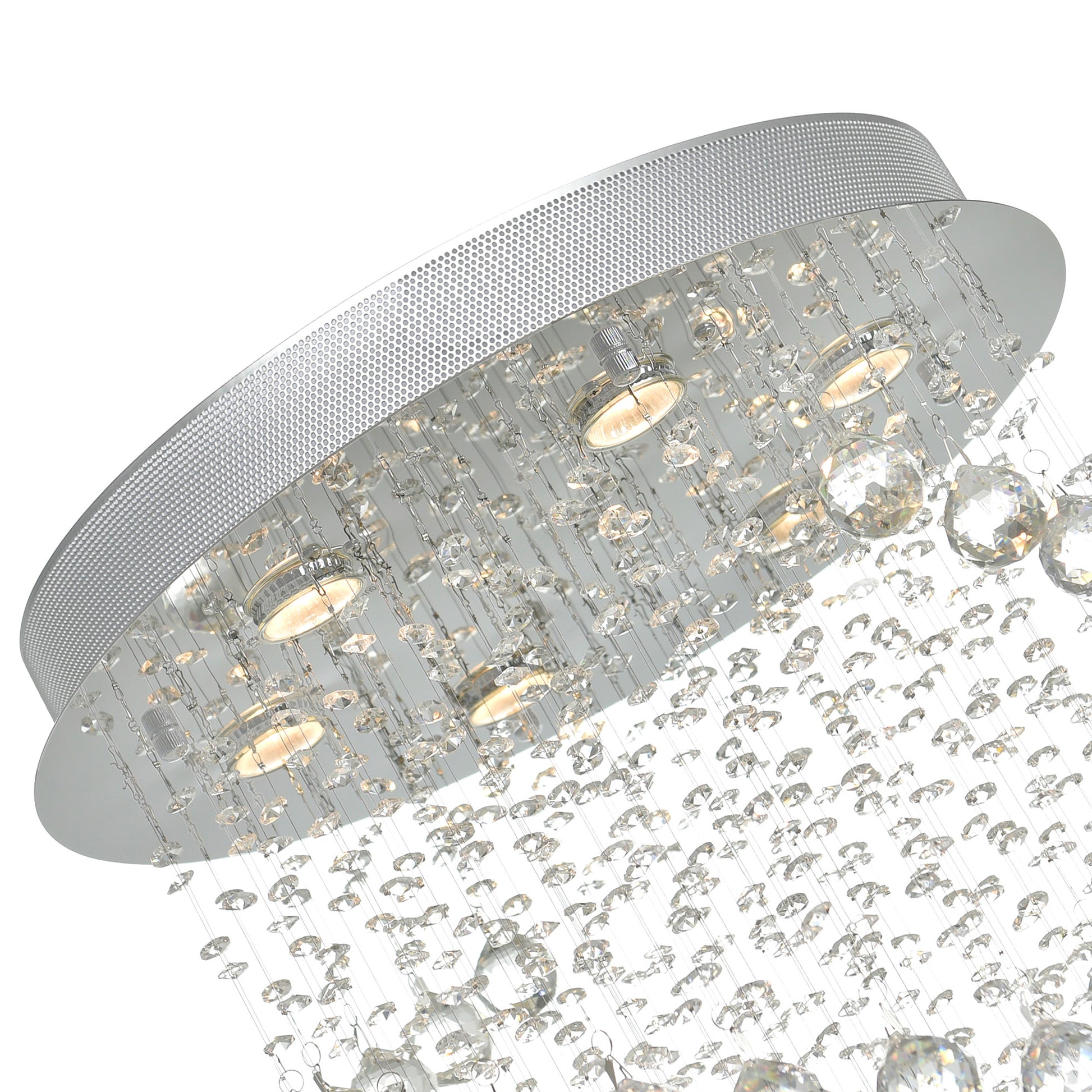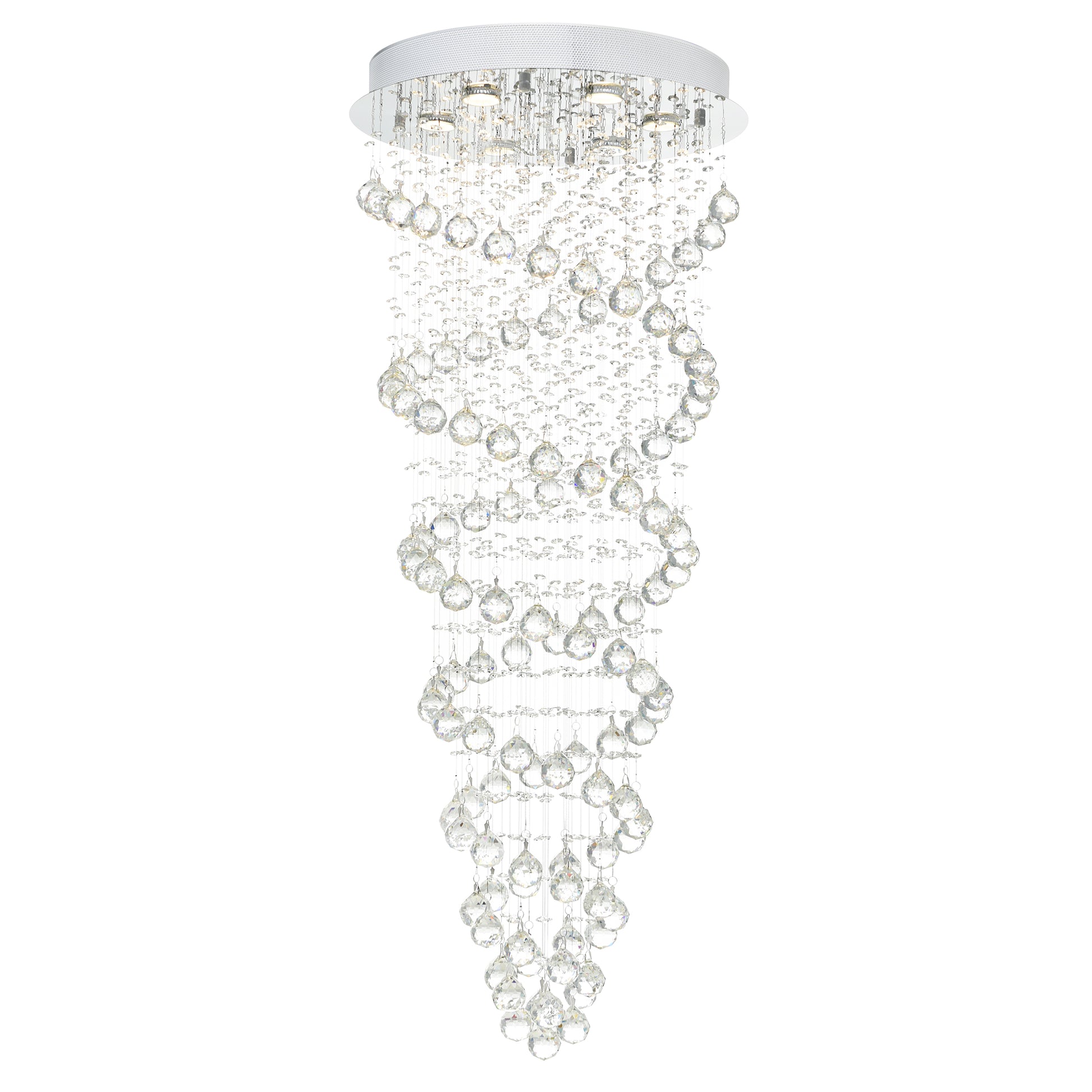 A lavish lighting that will easily add luxury to your home. Replace your outdated light fixture with the Double Spiral 6 Light Flush Mount Chandelier and take your lighting and decor up a couple of notches. With a 20 inch round canopy in chrome and a height measuring 47 inches, this chandelier will add a new level of class to any room. Its spiraling crystal silhouette will look absolutely gorgeous on the living room, the foyer, or in a stairwell.