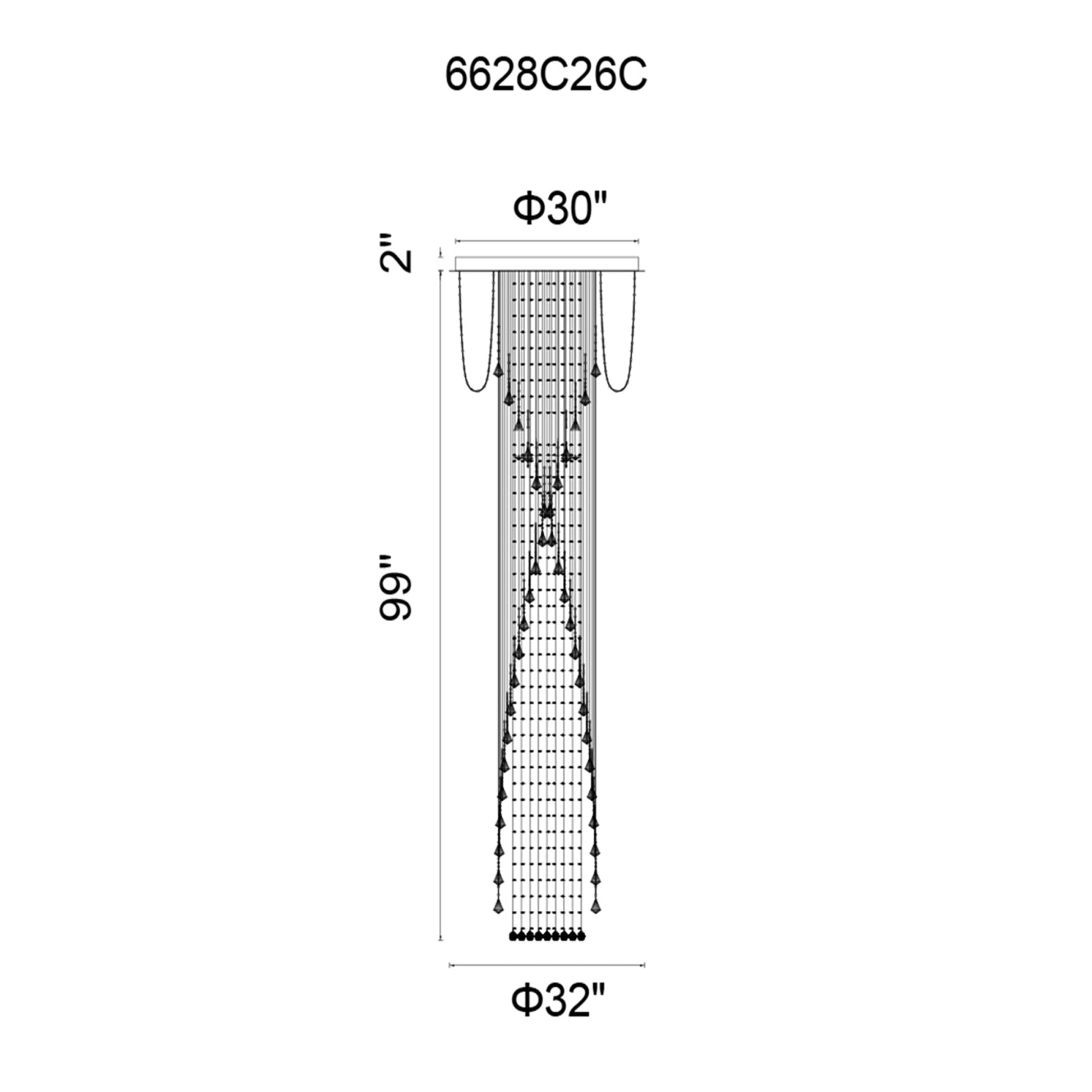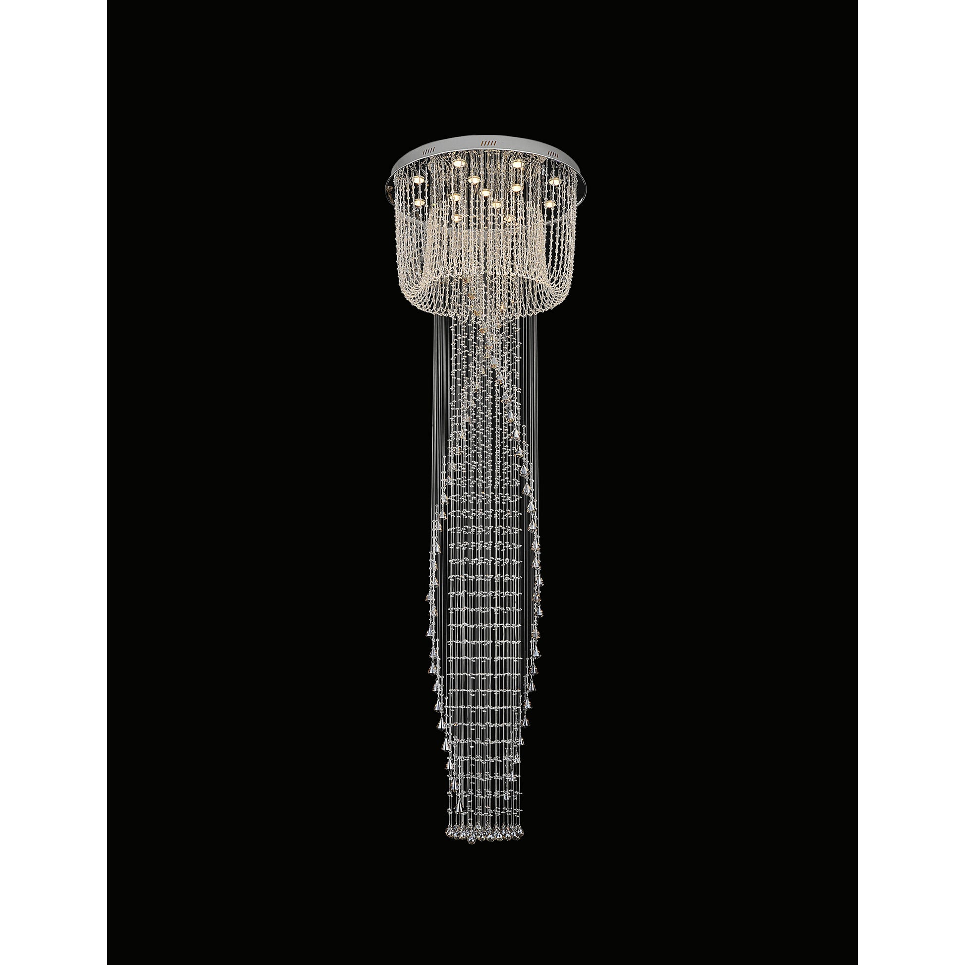 The Hallway 13 Light Flush Mount lights up to reveal a shapely formation of long crystal strands. Looking delicate and sophistication, this light source can add a dose of drama to any evening. It delivers a beguilingly warm light and an exquisite sparkle. Its round chrome canopy measures 30 inches in diameter while the glitter strands measure 99 inches long. This light fixture is compatible with a dimmer so you can adjust the brightness for truly luxe and romantic ambiance.