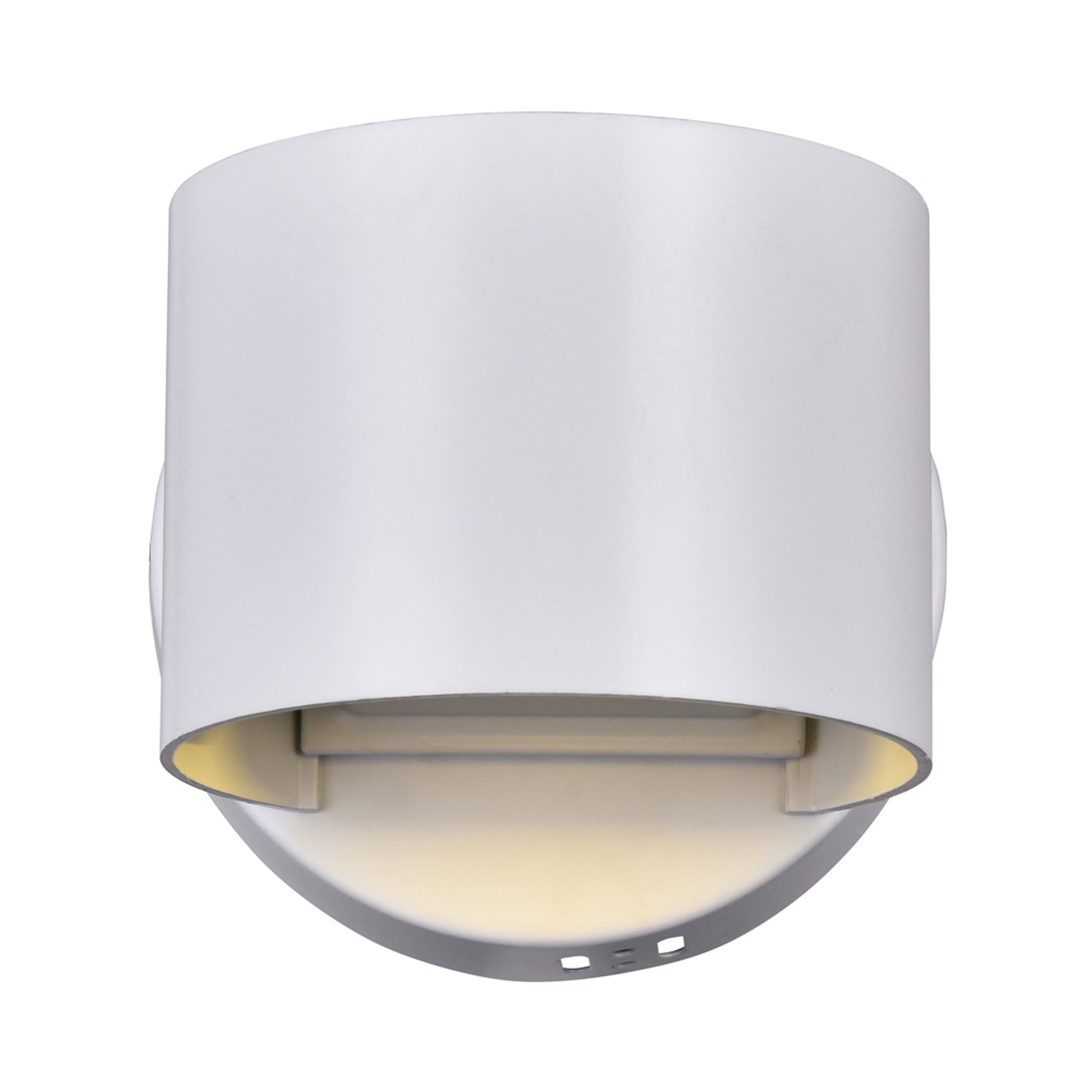 Add warmth and style to your space with the Lilliana Round Integrated LED Wall Sconce in white. Designed with a circular wall plate and a 6-inch cylindrical shade, this fixture delivers a soft wash of light ideal for creating ambiance in modern interiors. Its sleek steel construction and compact profile make it perfect for enhancing mood and opening up tighter areas like hallways, bedrooms, or reading corners.