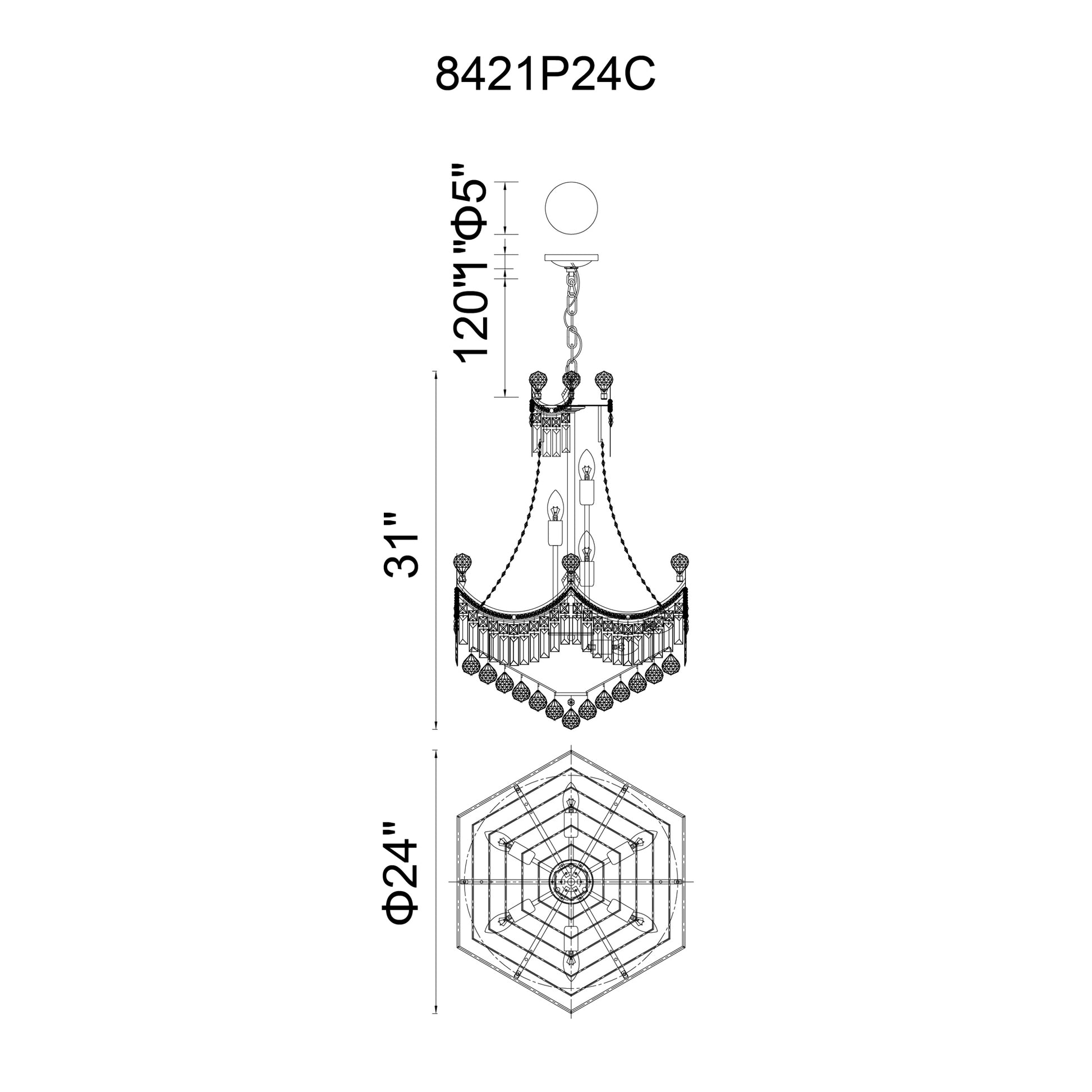 Lit or not, the Amanda 11 Light Chandelier promises you of an eye-catching look. This glamorous down chandelier has a chrome hardware covered in meticulously strung faceted crystals. Requiring a total of 11 candelabra bulbs, this large crystal chandelier will cast enough glow to your space. This gleaming chandelier that measures 24 inch in diameter and 31 inch in height will look perfect as an entryway light to greet and wow your guests.